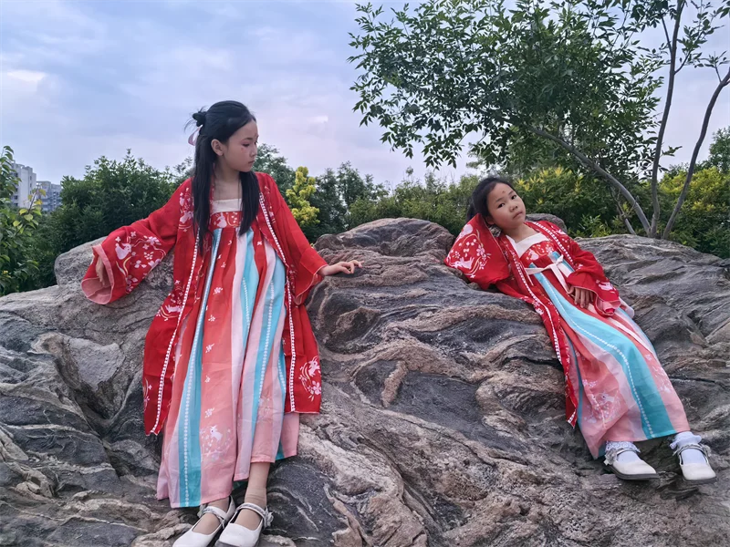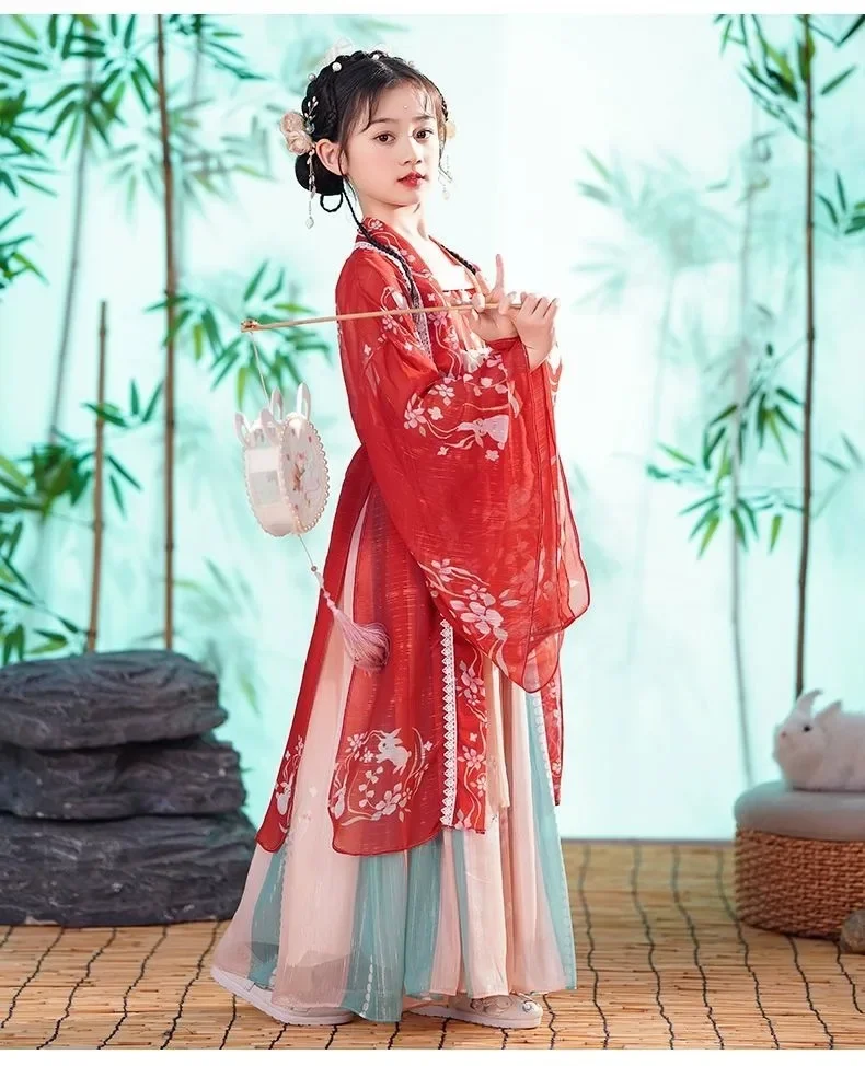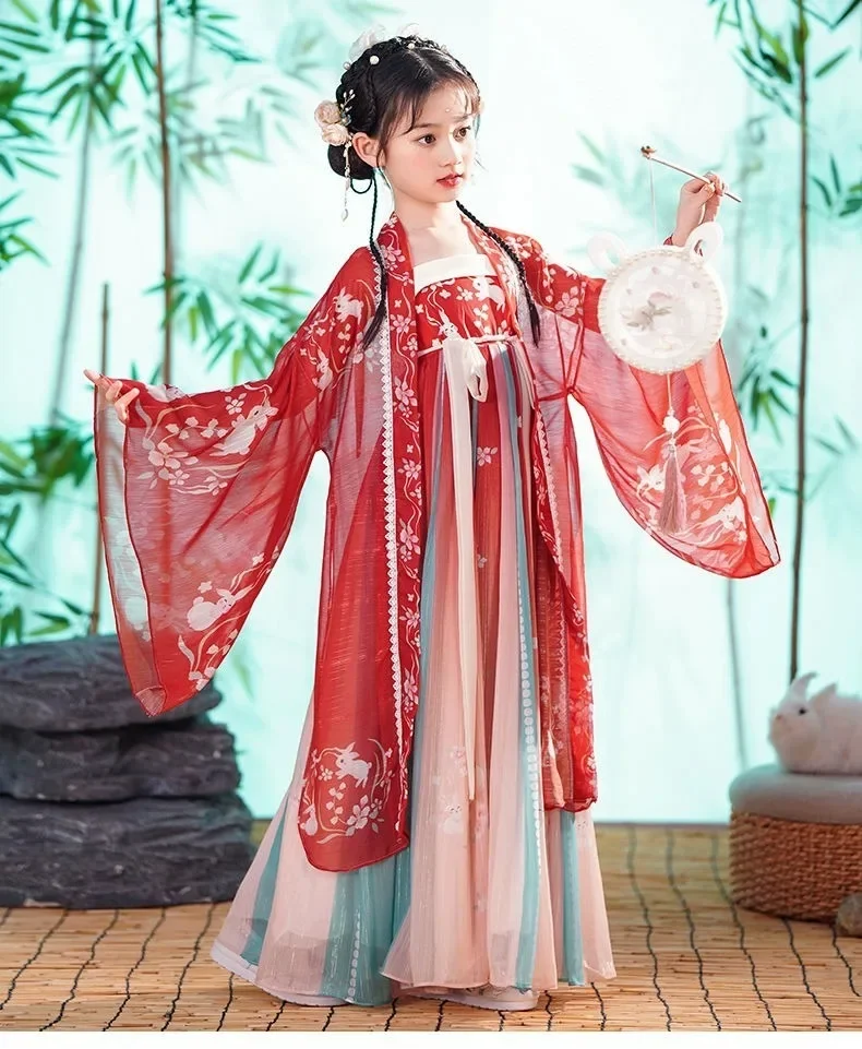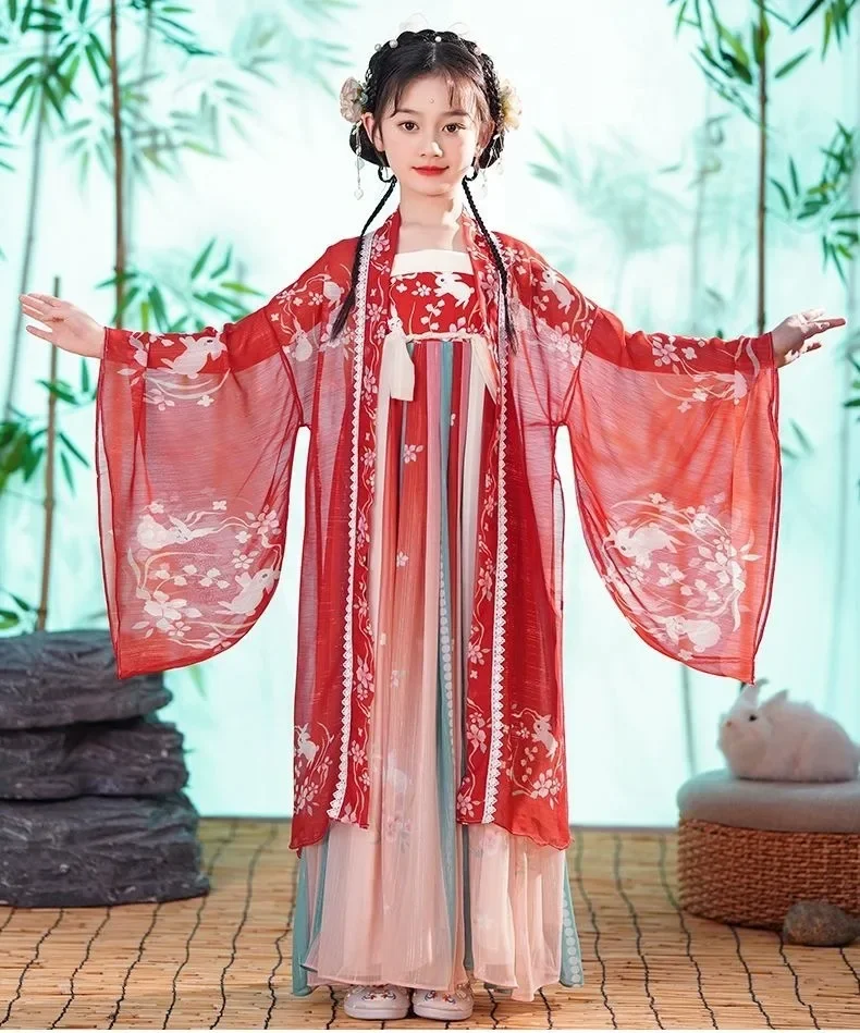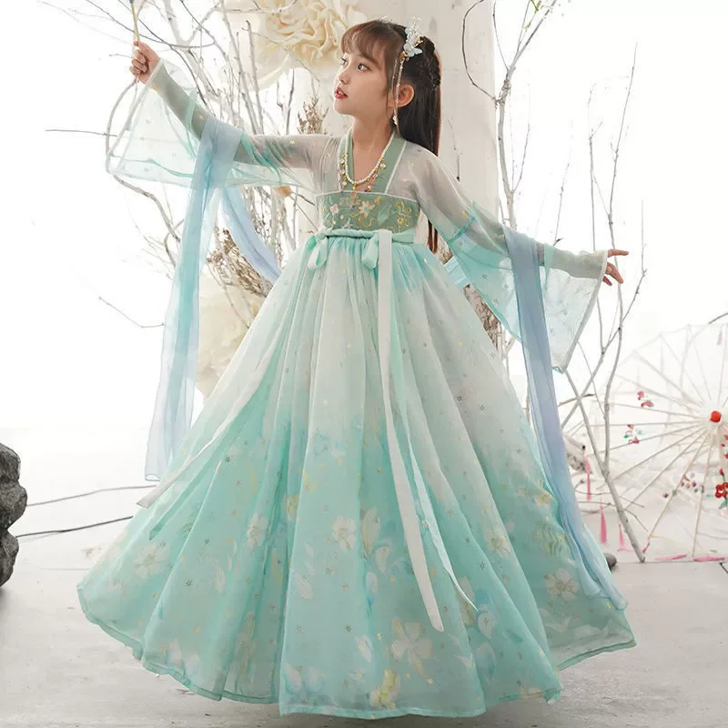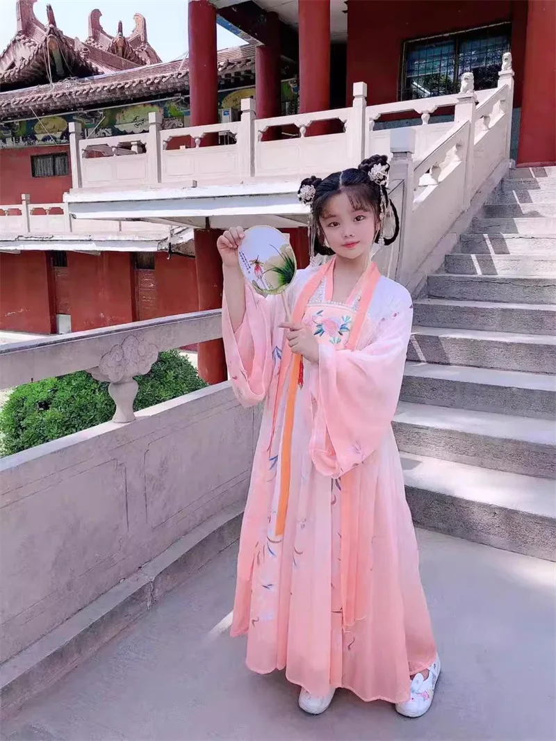 Abito lungo estivo Cappotto Set Ragazza Tang Baby Hanfu Abiti Set per bambini Esegui outfit Costume Abbigliamento per bambini Abiti per ragazze Abito