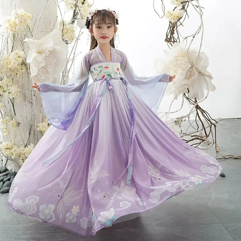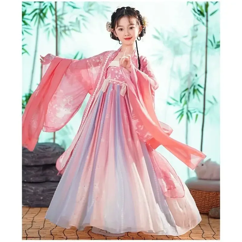 Abito lungo estivo Cappotto Set Ragazza Tang Baby Hanfu Abiti Set per bambini Esegui outfit Costume Abbigliamento per bambini Abiti per ragazze Abito