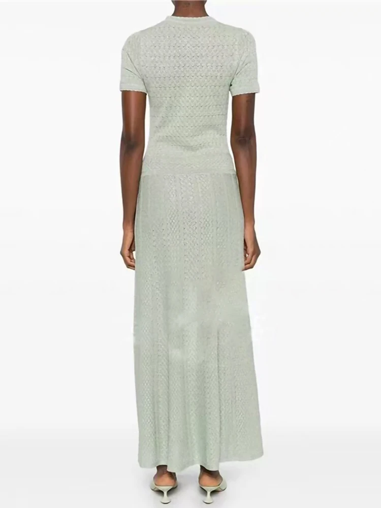 Abito lungo in maglia con temperamento di nuova moda primavera estate donna elegante bottone con perle o-collo manica corta abito sottile da donna 1Abito lungo in maglia con temperamento di nuova moda primavera estate donna elegante bottone con perle o-collo manica corta abito sottile da donna