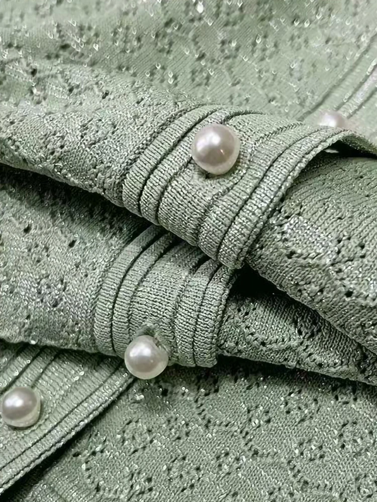 Abito lungo in maglia con temperamento di nuova moda primavera estate donna elegante bottone con perle o-collo manica corta abito sottile da donna