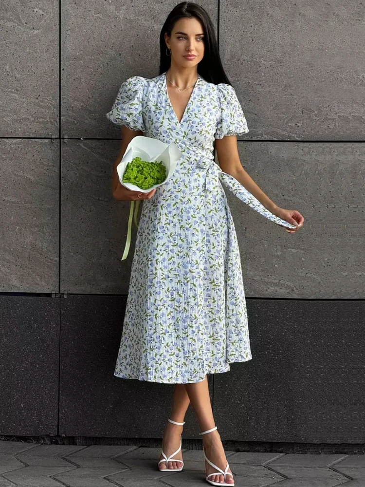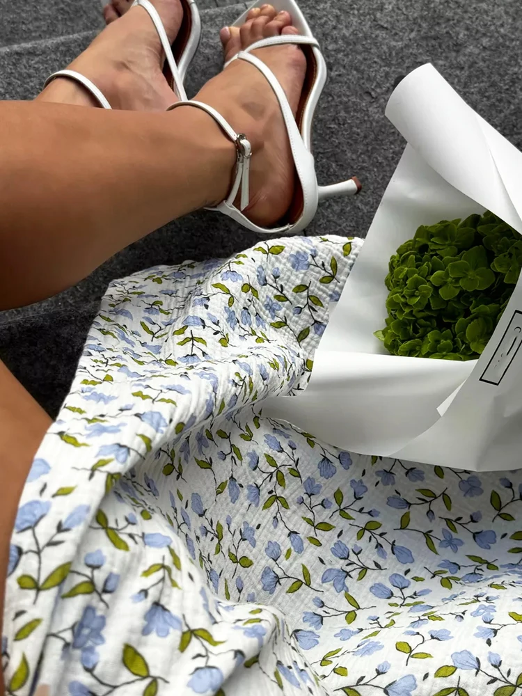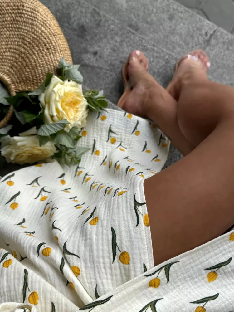 Abito lungo leggero da donna estivo 100% cotone Abiti longuette a trapezio Mussola con spacchi laterali Fiori Elegante abito beige da donna