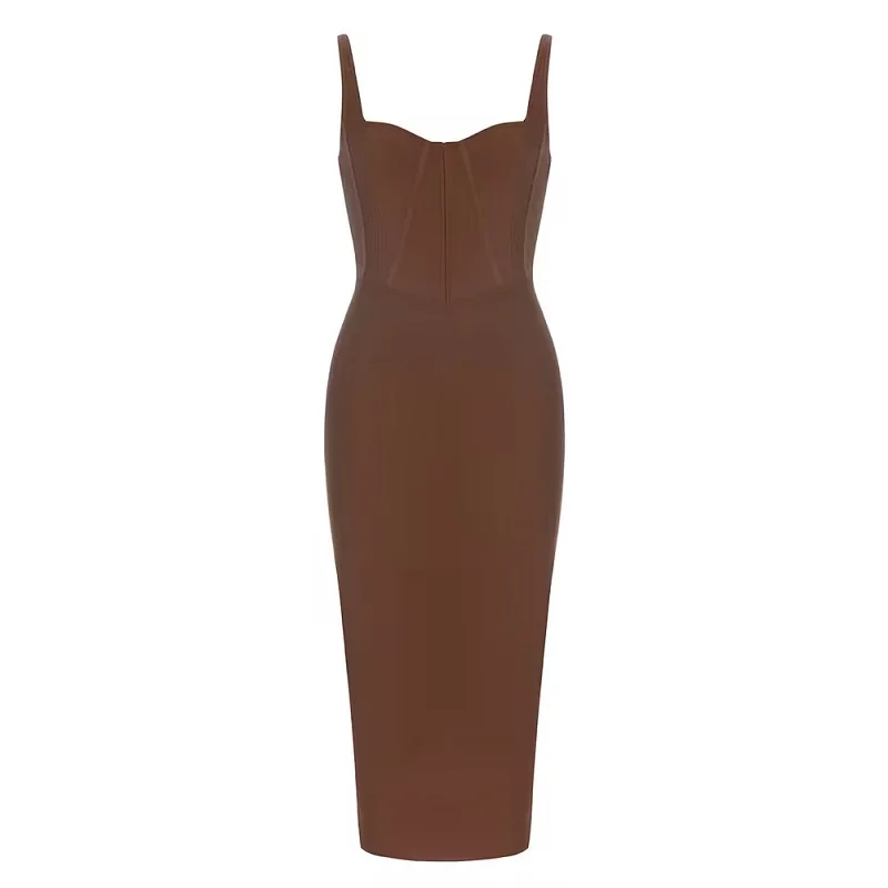 Abito lungo marrone scuro con cinturino senza maniche vestito dalla fasciatura aderente vestito da sera per celebrità di estate delle donne di moda Sexy Vestidos 1Abito lungo marrone scuro con cinturino senza maniche vestito dalla fasciatura aderente vestito da sera per celebrità di estate delle donne di moda Sexy Vestidos