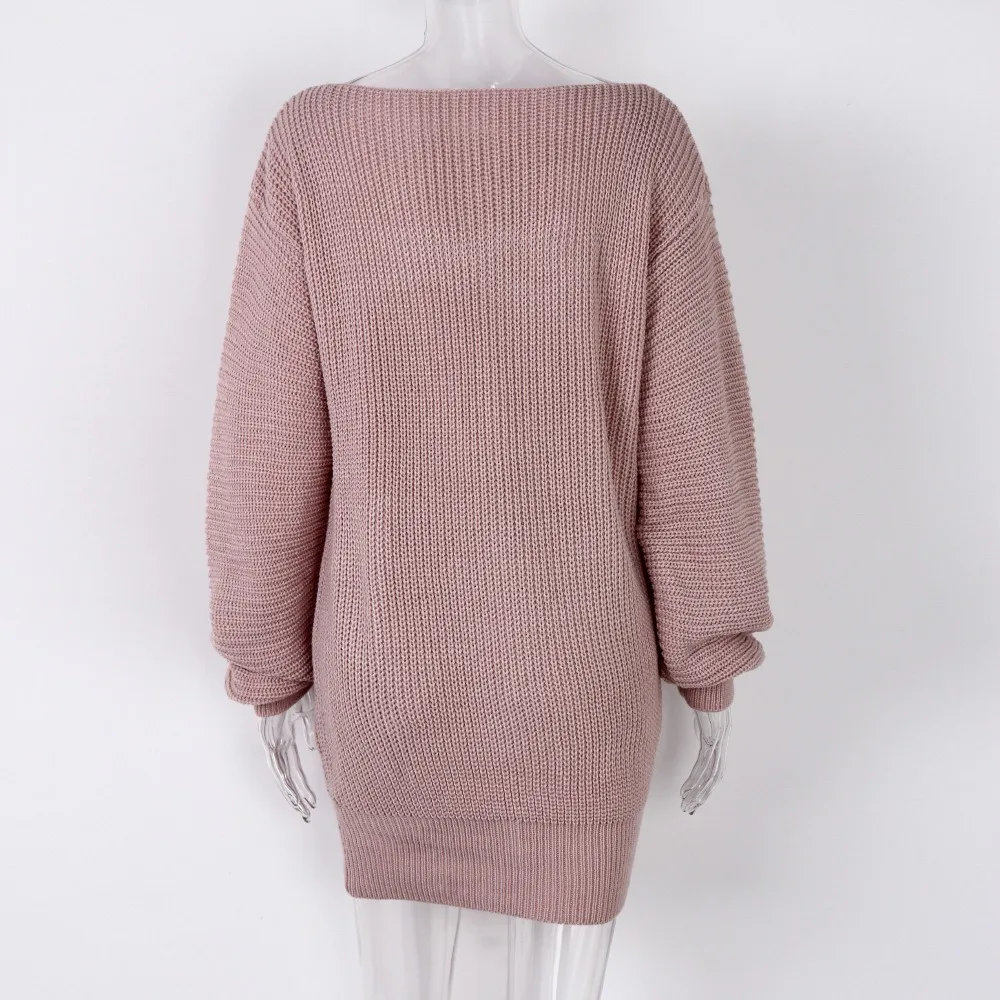 Abito maglione casual in maglia allentata con scollo a V a maniche lunghe in stile europeo autunno/inverno