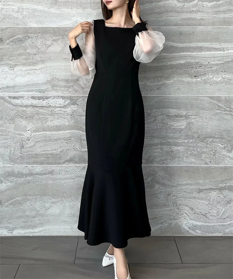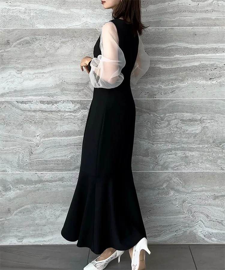 Abito patchwork a maniche lunghe primavera autunno inverno stazione europea commercio estero