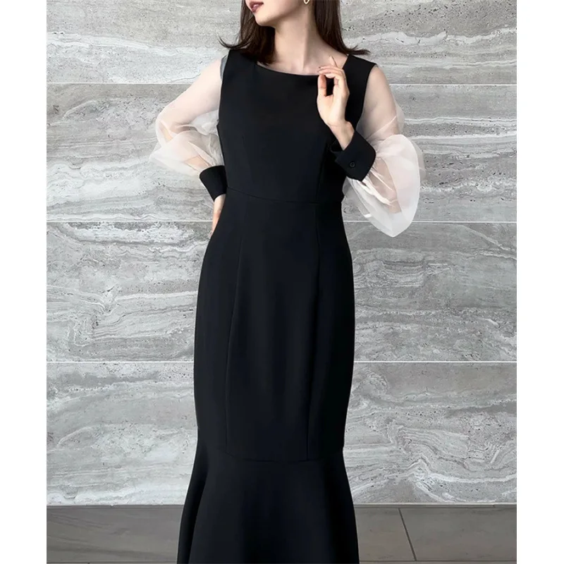 Abito patchwork a maniche lunghe primavera autunno inverno stazione europea commercio estero