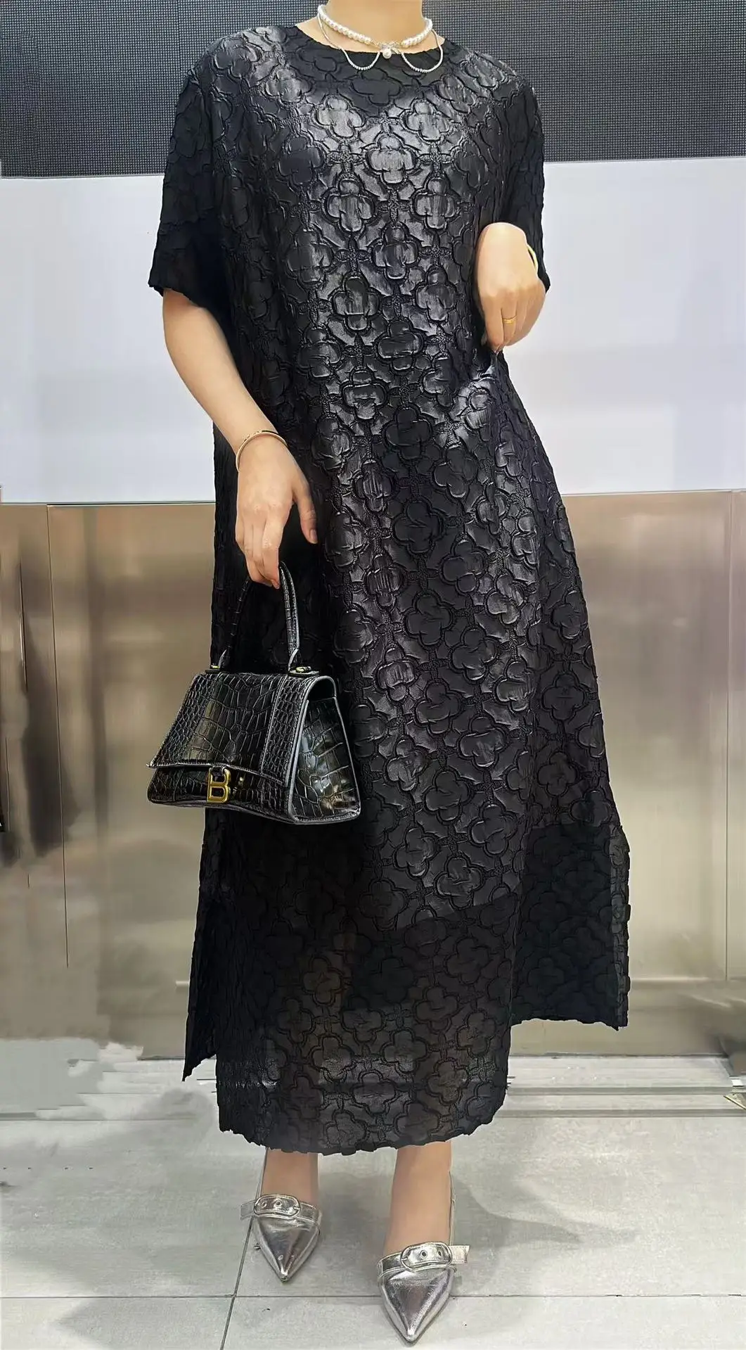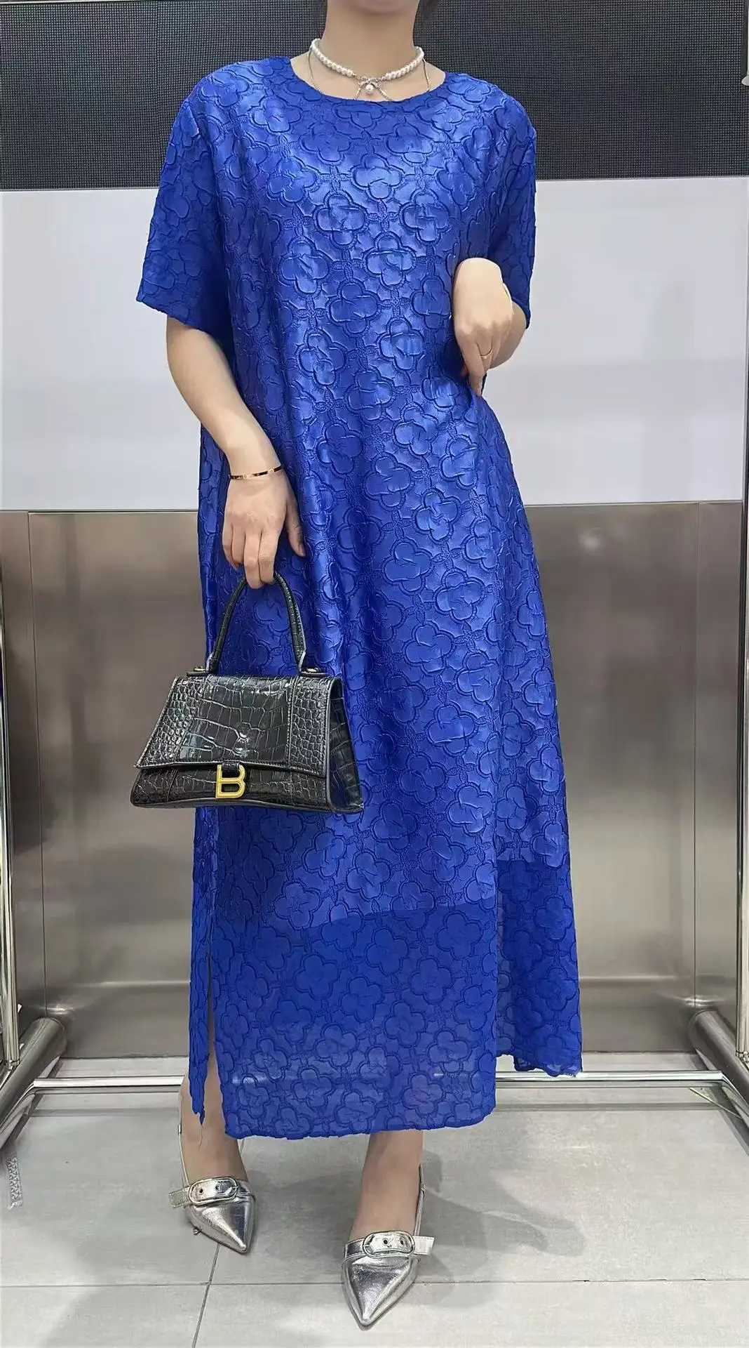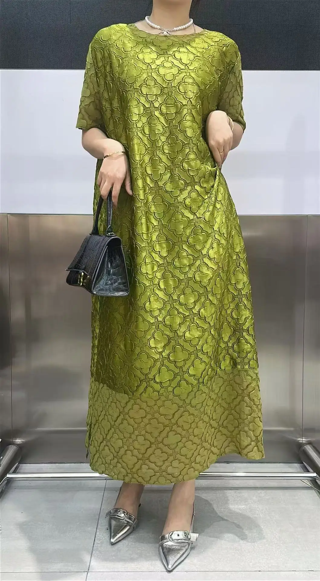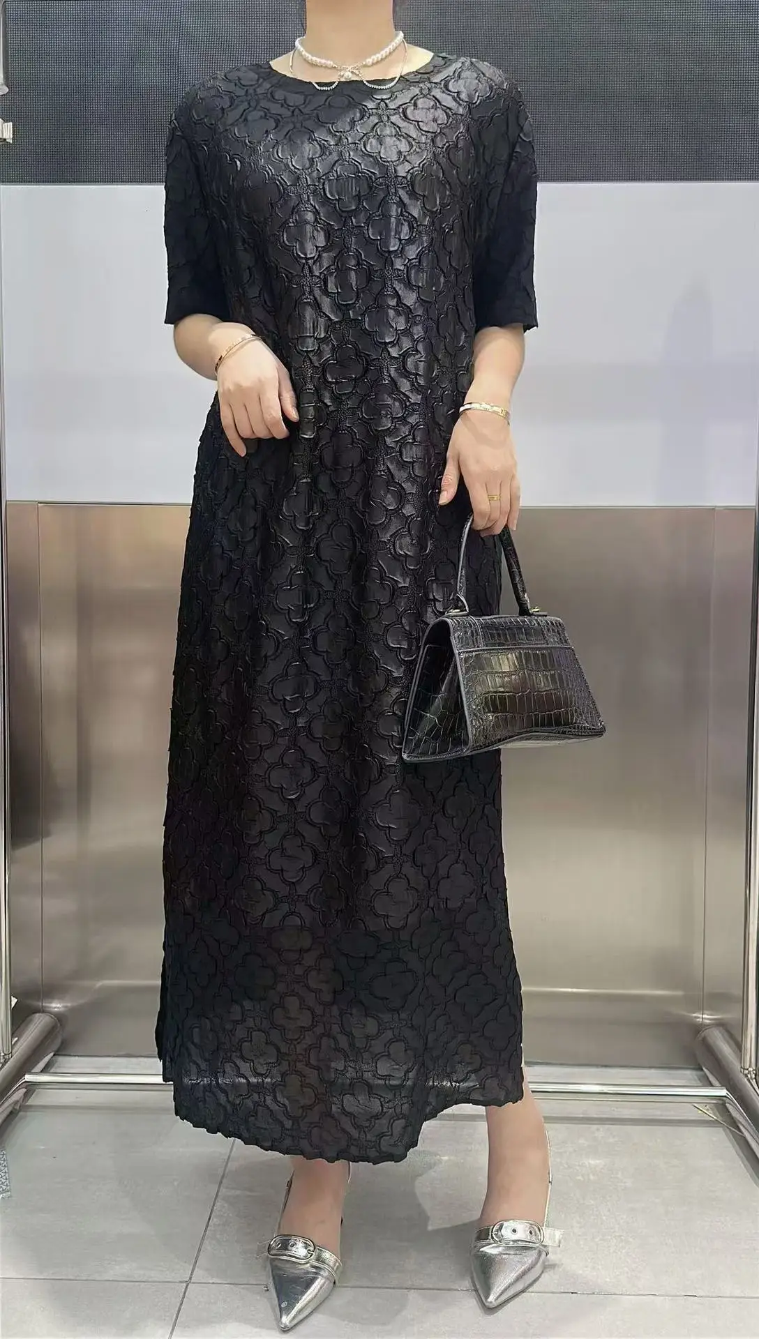Abito plissettato Miyake per donna 2025 Nuova gonna a pieghe ampia in rilievo tridimensionale ricamata per l’industria pesante in tinta unita