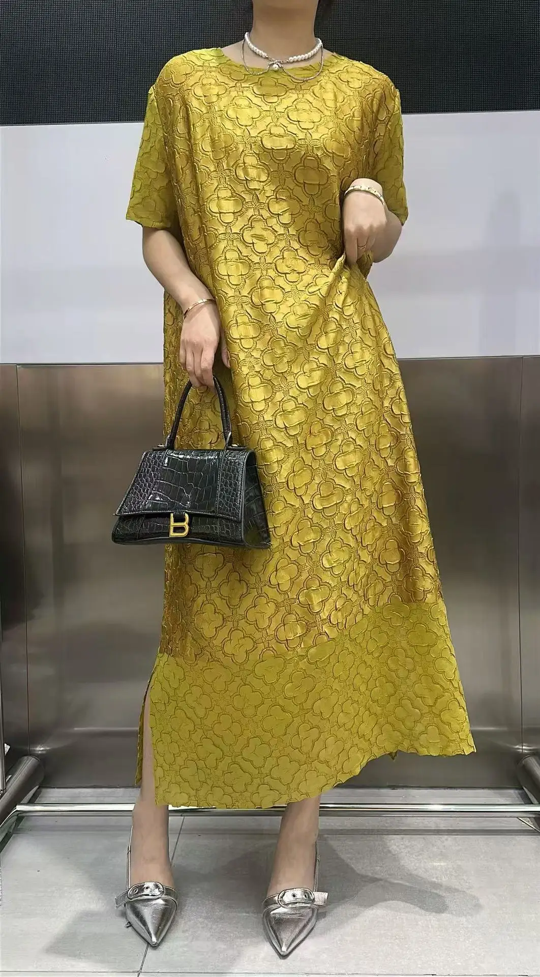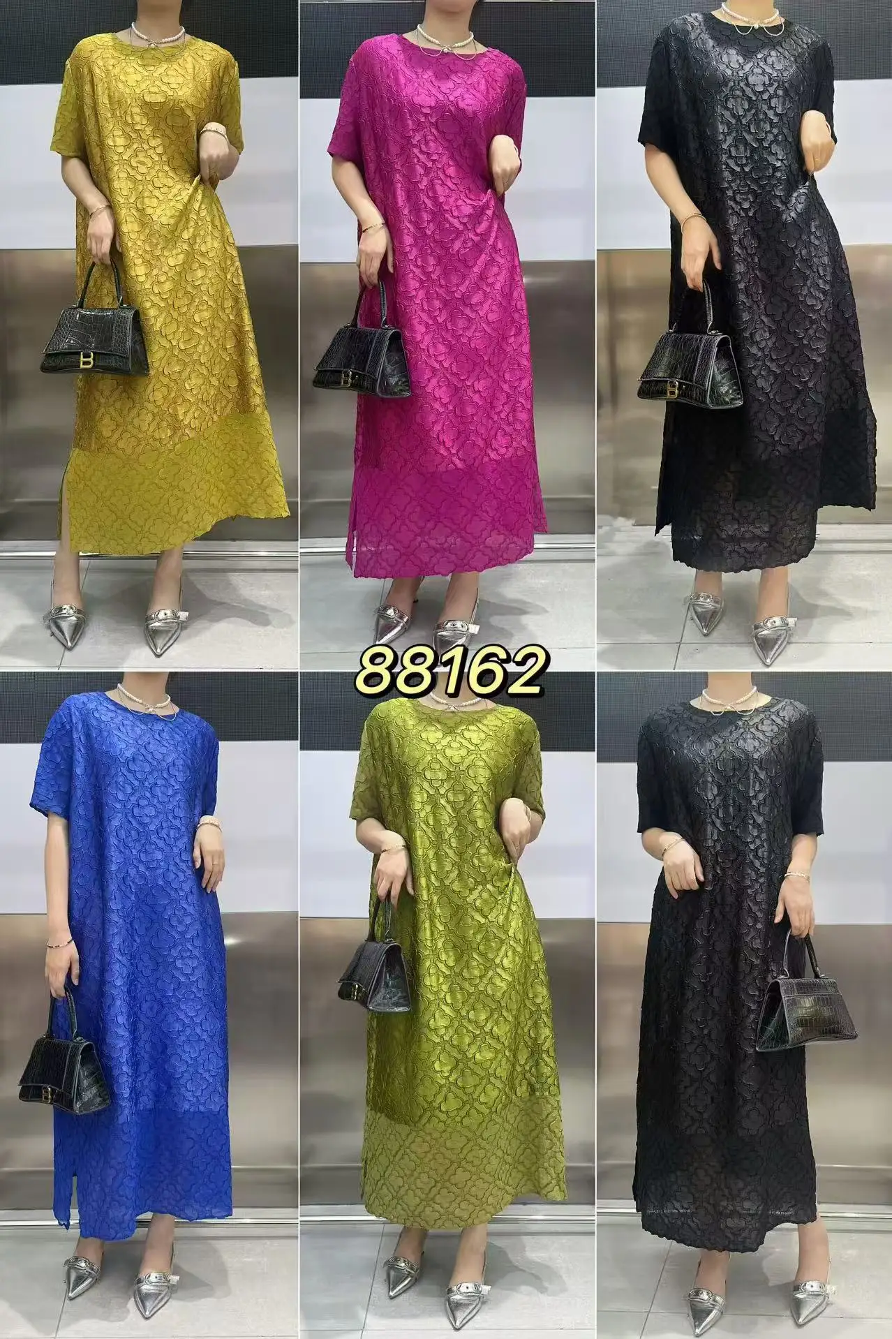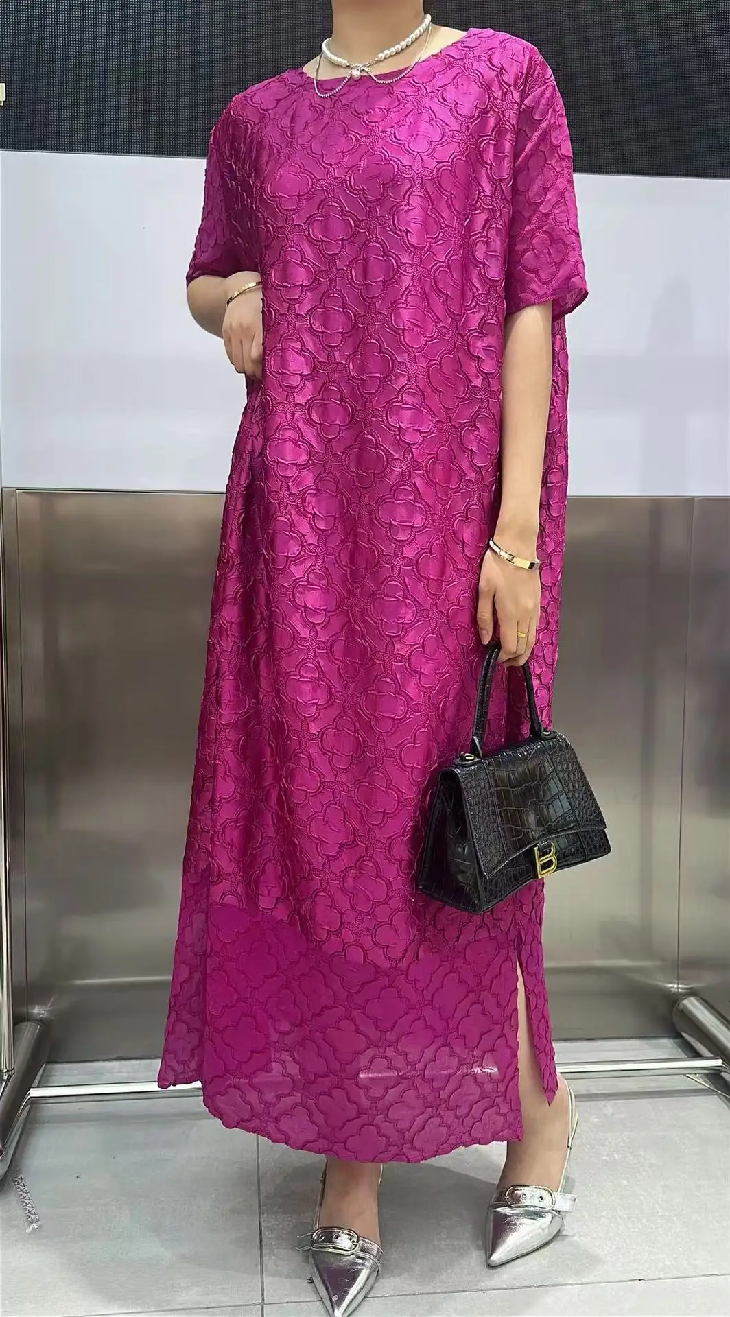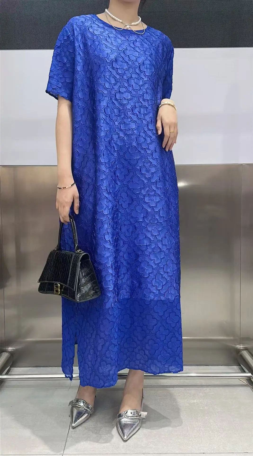 Abito plissettato Miyake per donna 2025 Nuova gonna a pieghe ampia in rilievo tridimensionale ricamata per l’industria pesante in tinta unita