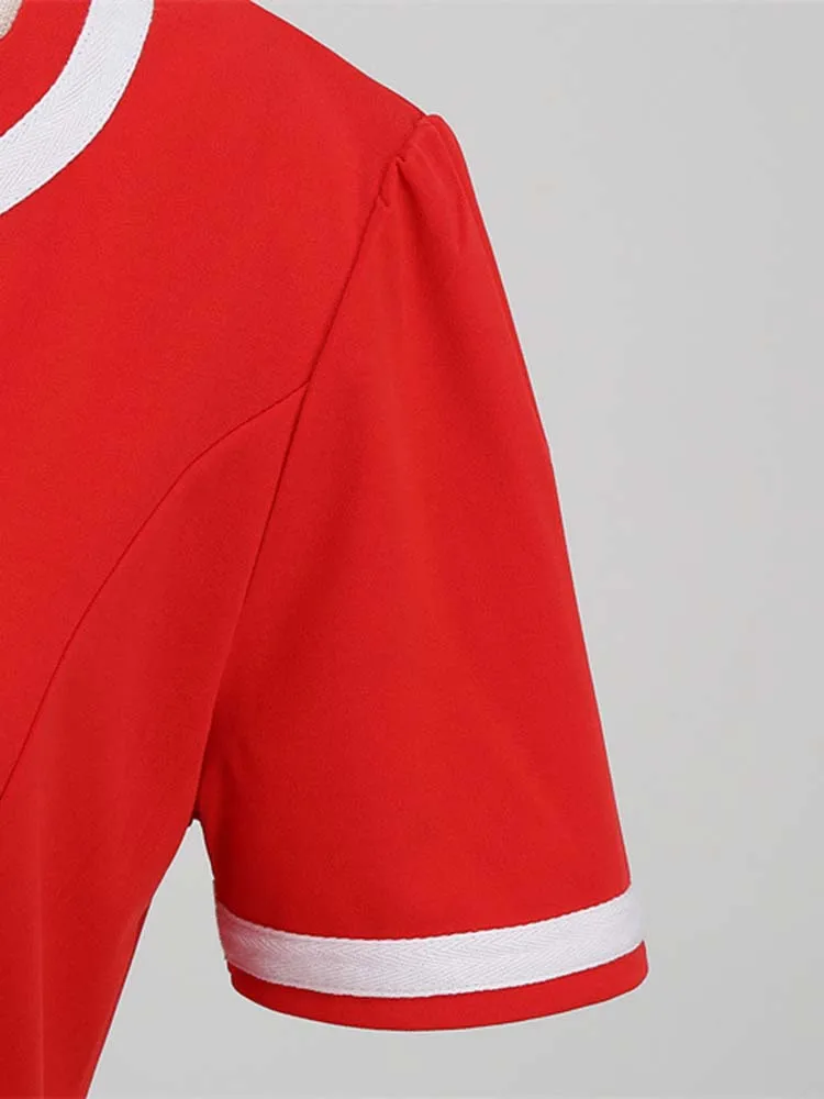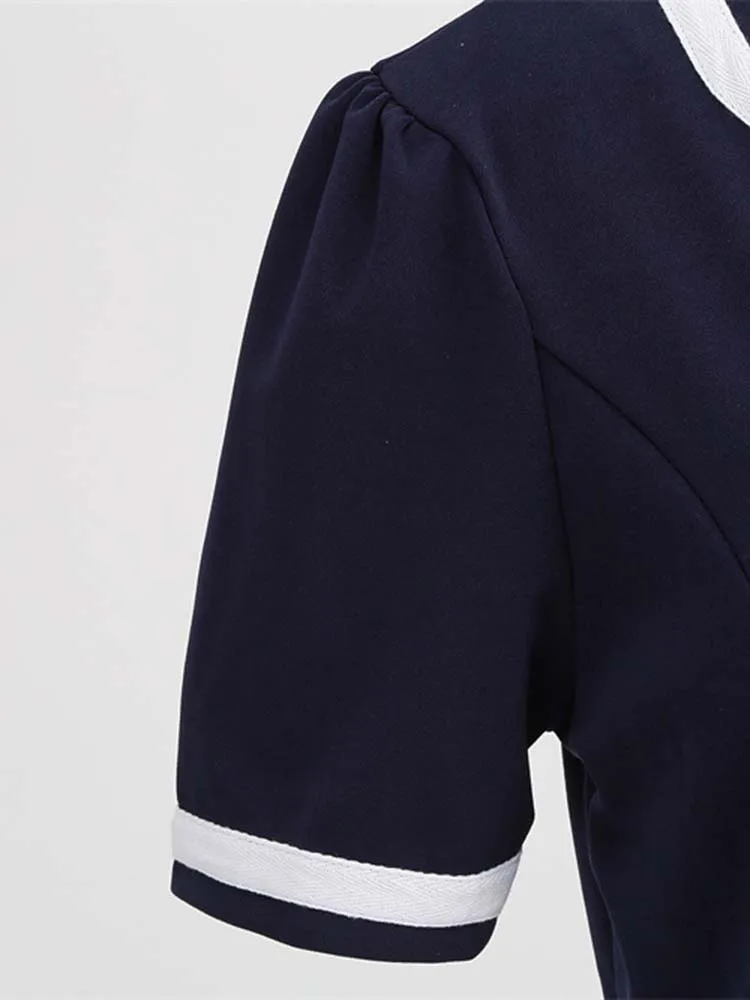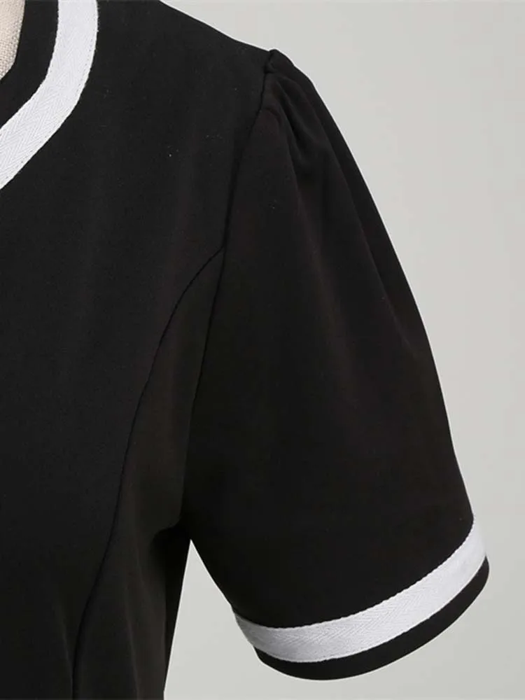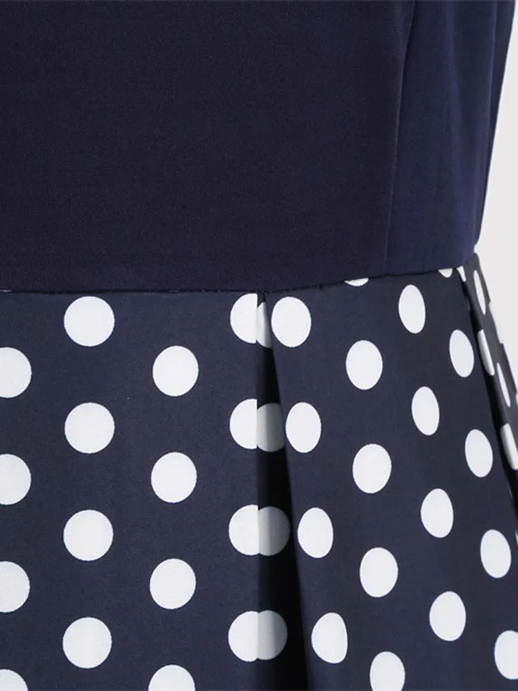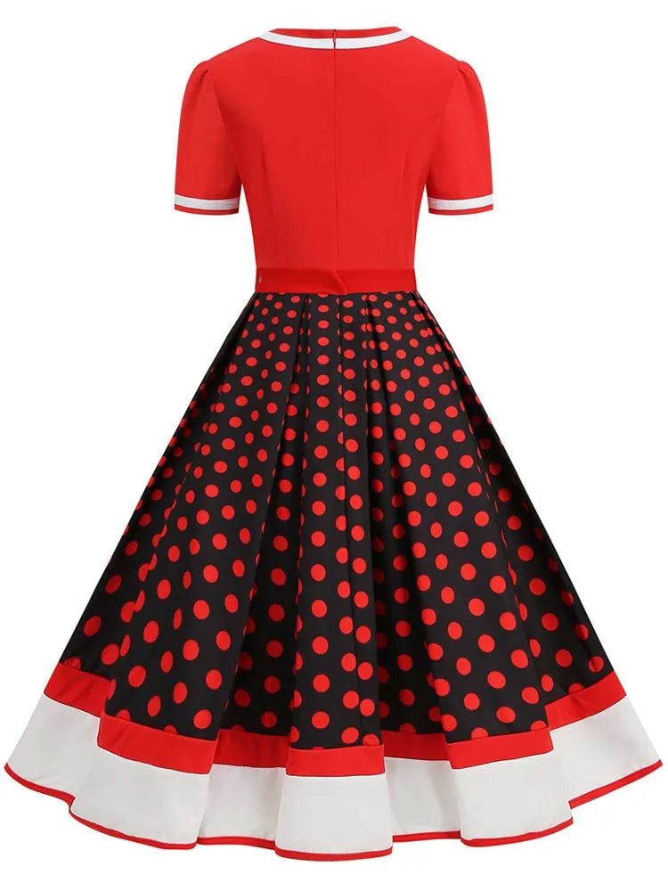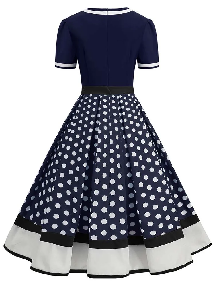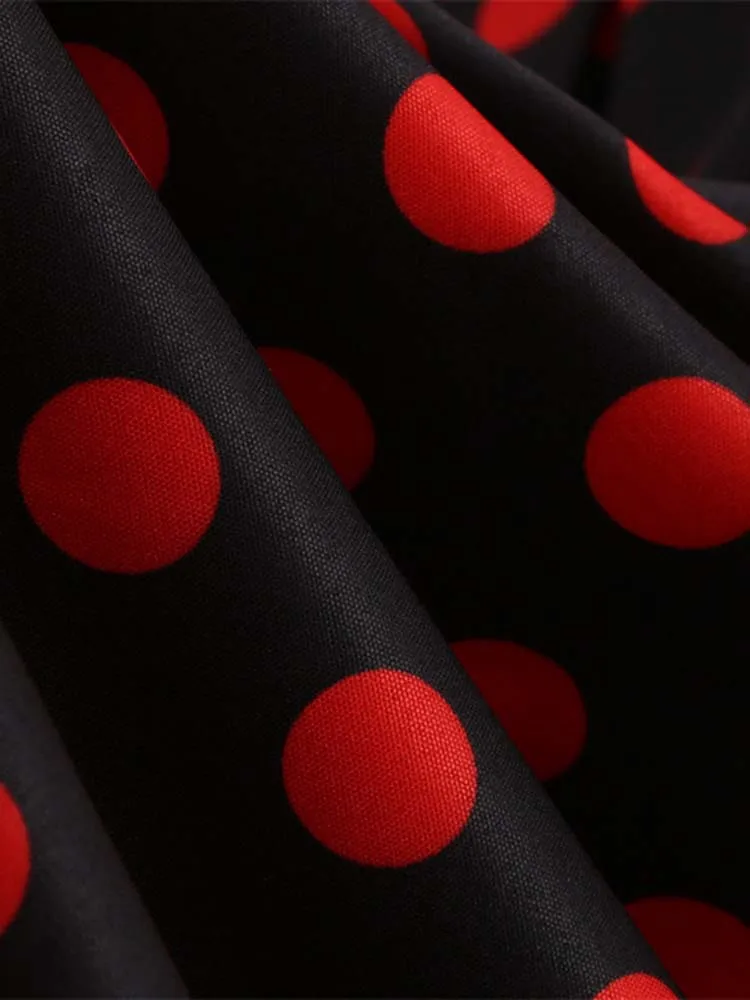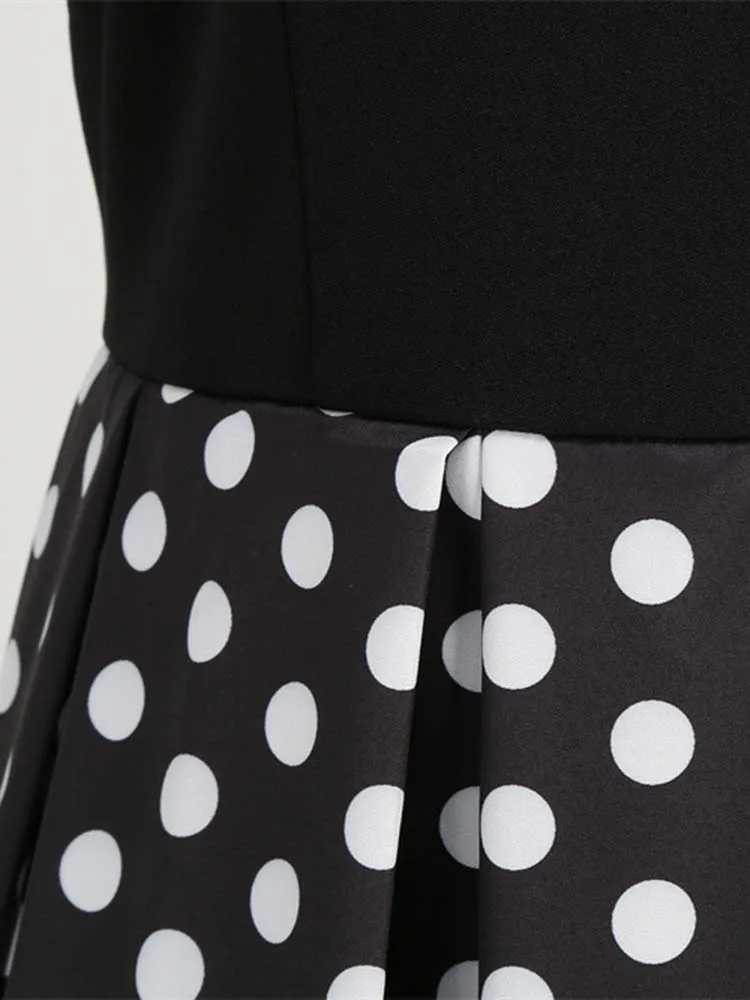 Abito plissettato vintage a maniche corte con scollo a V nero con cintura Abito da donna a pois anni ’50 Abito estivo taglie forti