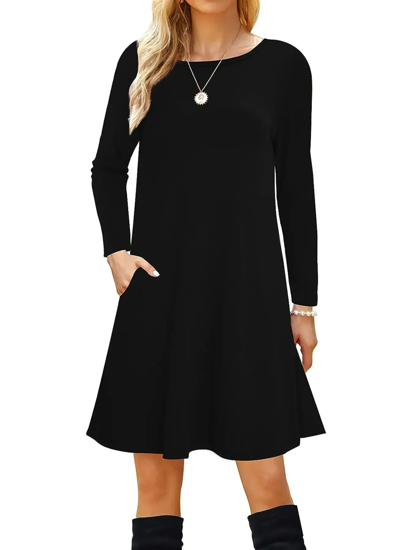 Abito pullover ampio con tasca a maniche lunghe tinta unita girocollo casual da donna della stazione indipendente autunnale