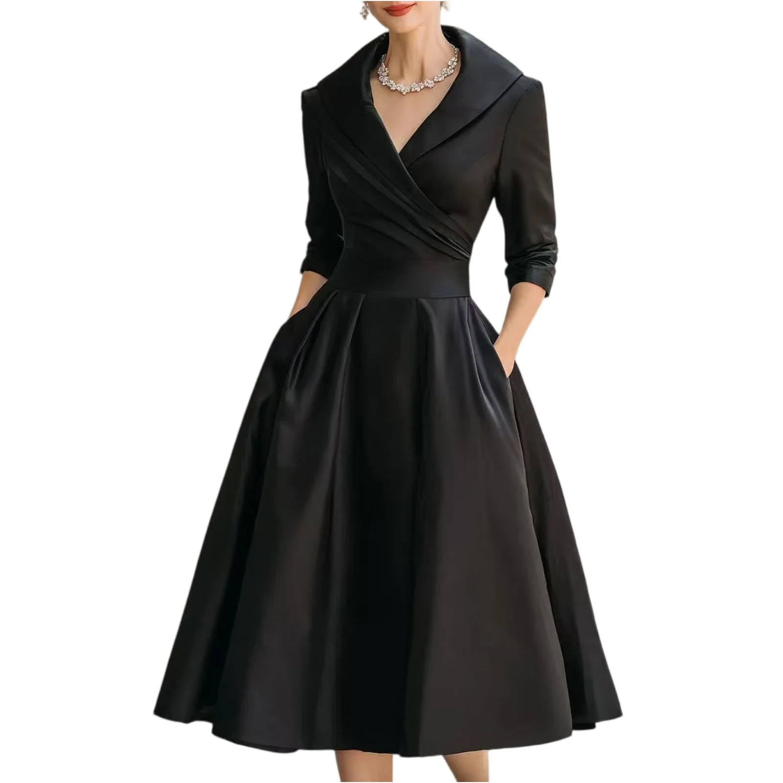 Abito retrò con scollo a V moda casual da donna Vita elegante che dimagrisce Abito da festa a maniche lunghe Abito da pendolare a vita alta tinta unita 1Abito retrò con scollo a V moda casual da donna Vita elegante che dimagrisce Abito da festa a maniche lunghe Abito da pendolare a vita alta tinta unita