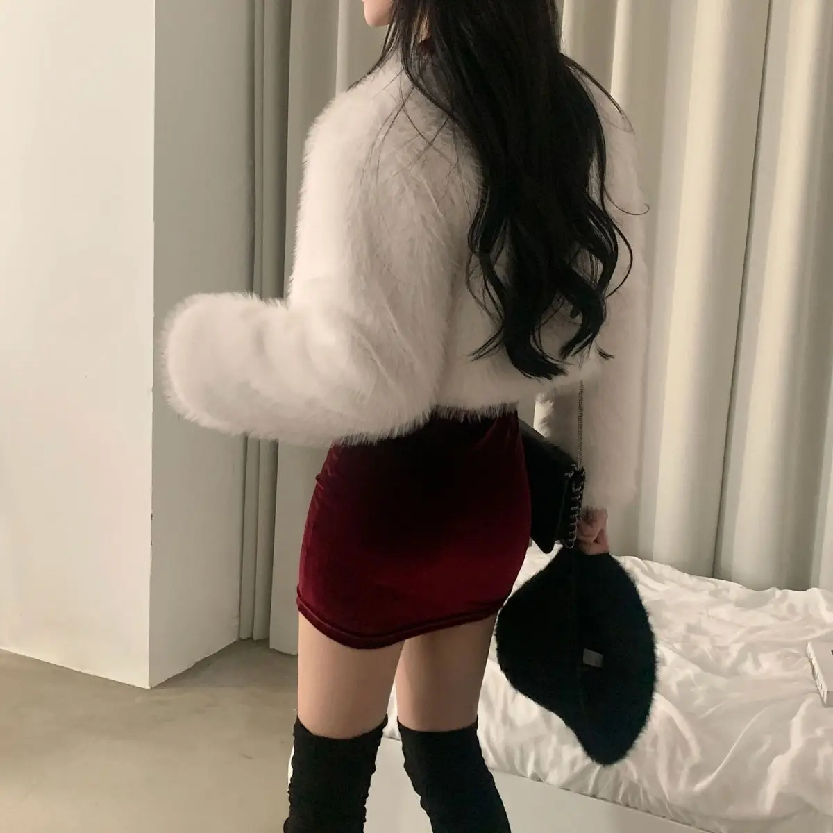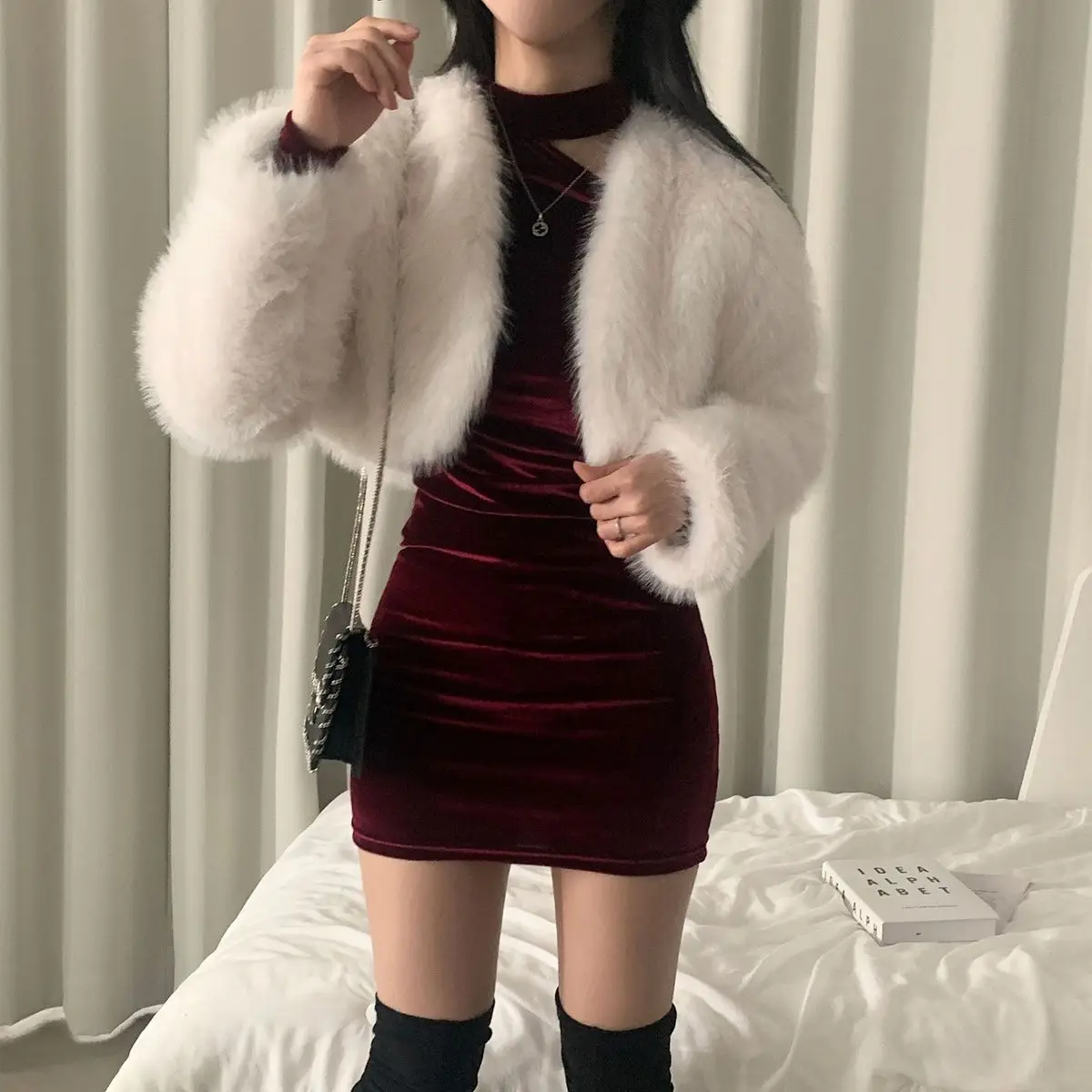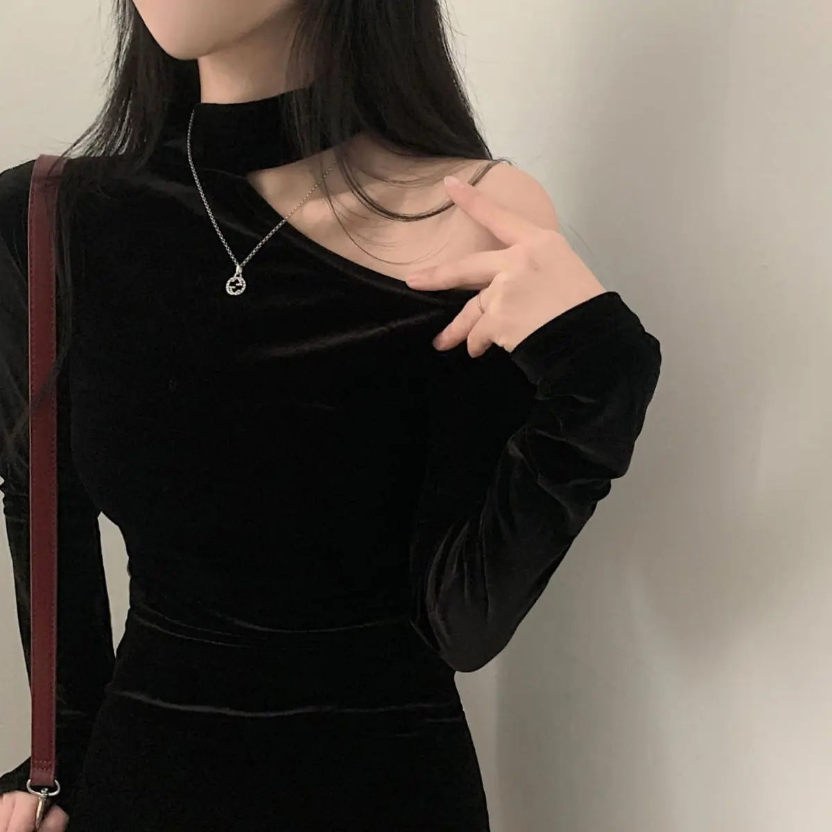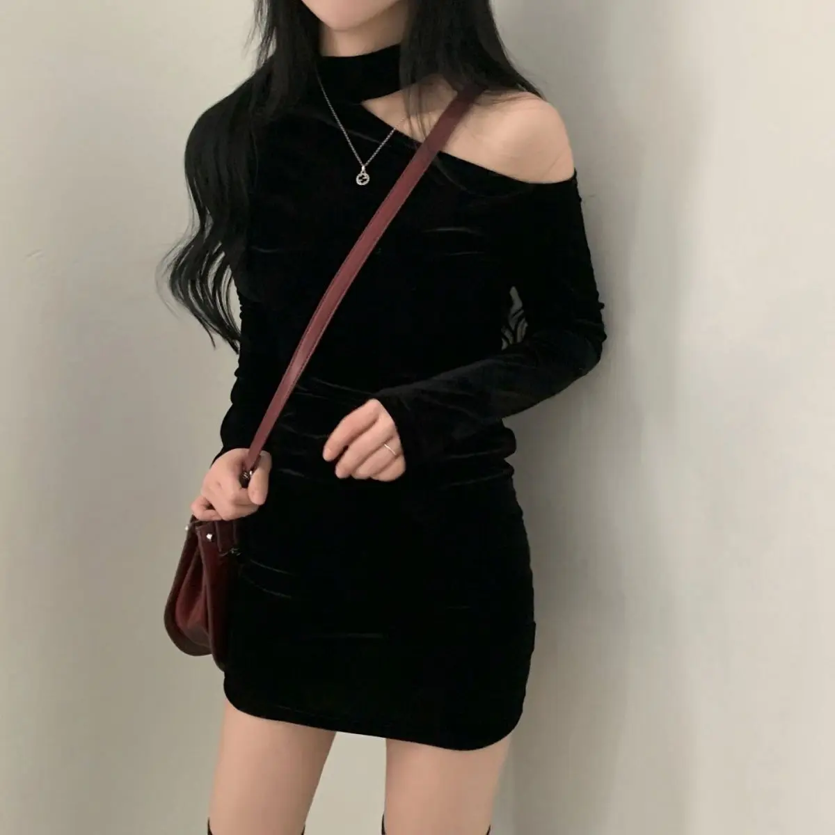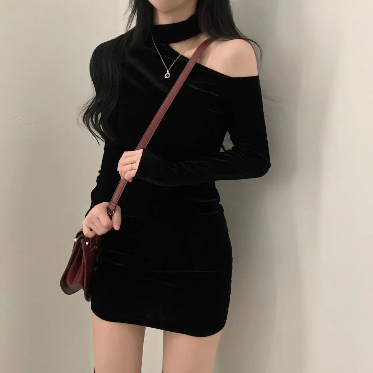 Abito rosso in velluto dorato nuovo autunno e inverno da donna a linea intera Hot Girl Nuova gonna slim a maniche lunghe