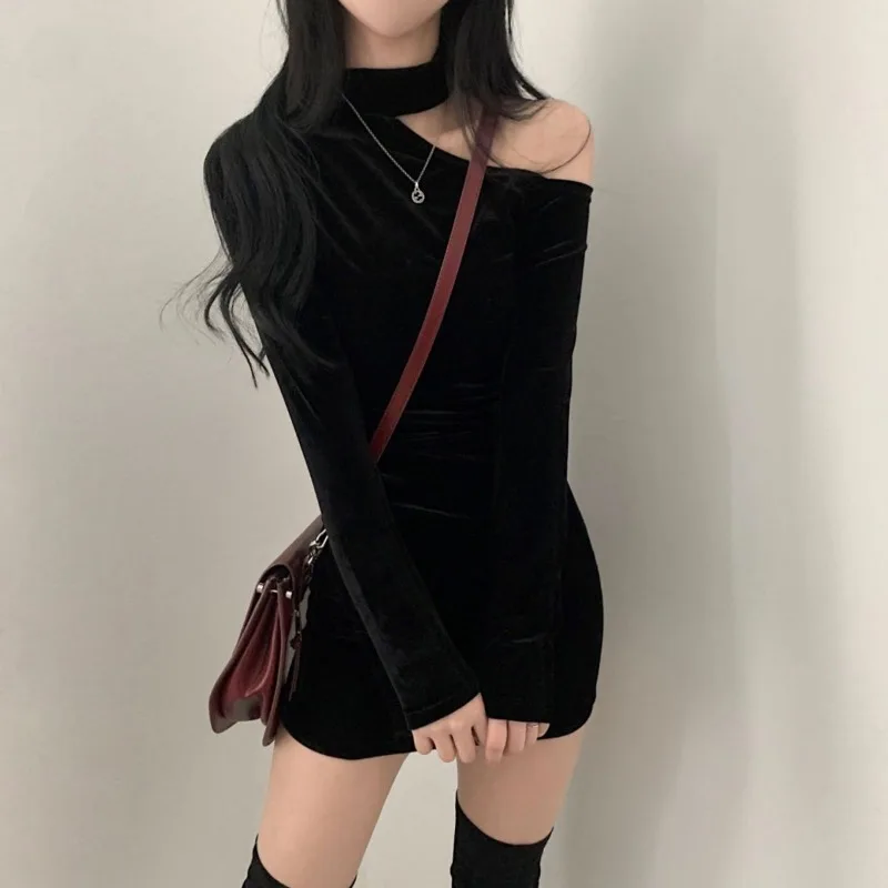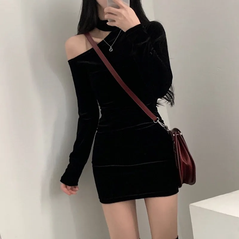 Abito rosso in velluto dorato nuovo autunno e inverno da donna a linea intera Hot Girl Nuova gonna slim a maniche lunghe