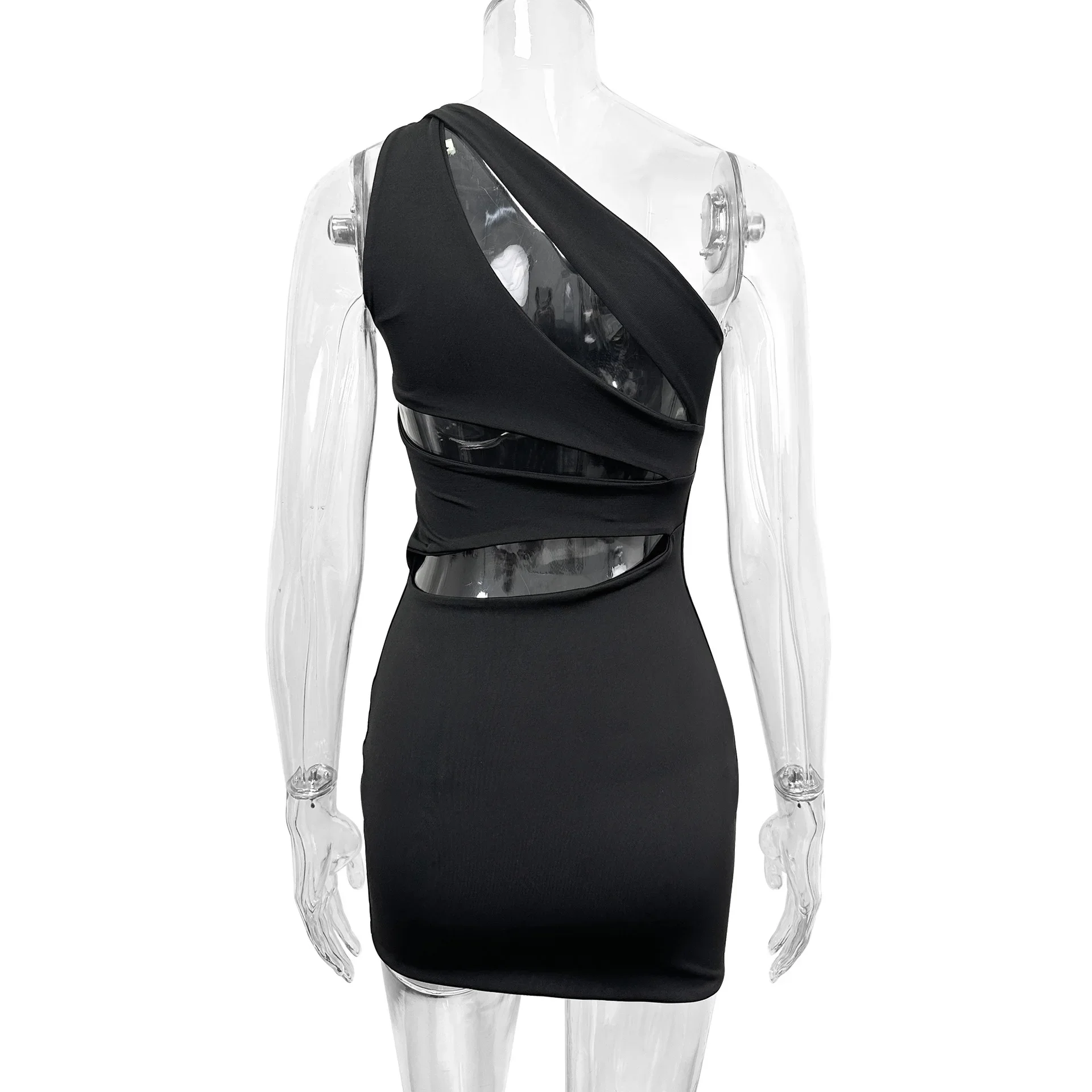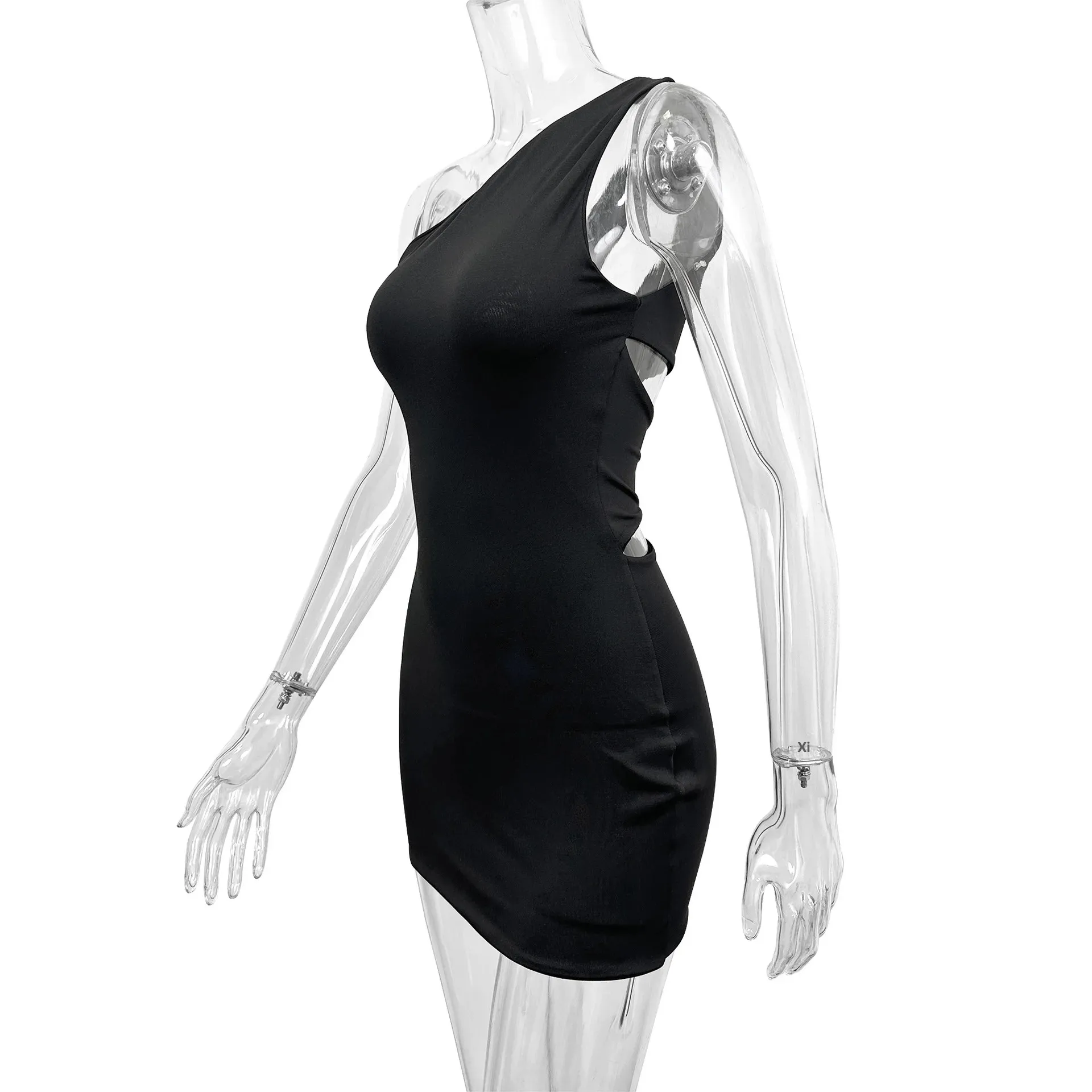 Abito sexy con gonna corta senza maniche Abito aderente scavato con spalla inclinata transfrontaliera per la stagione autunnale Moda femminile 1Abito sexy con gonna corta senza maniche Abito aderente scavato con spalla inclinata transfrontaliera per la stagione autunnale Moda femminile