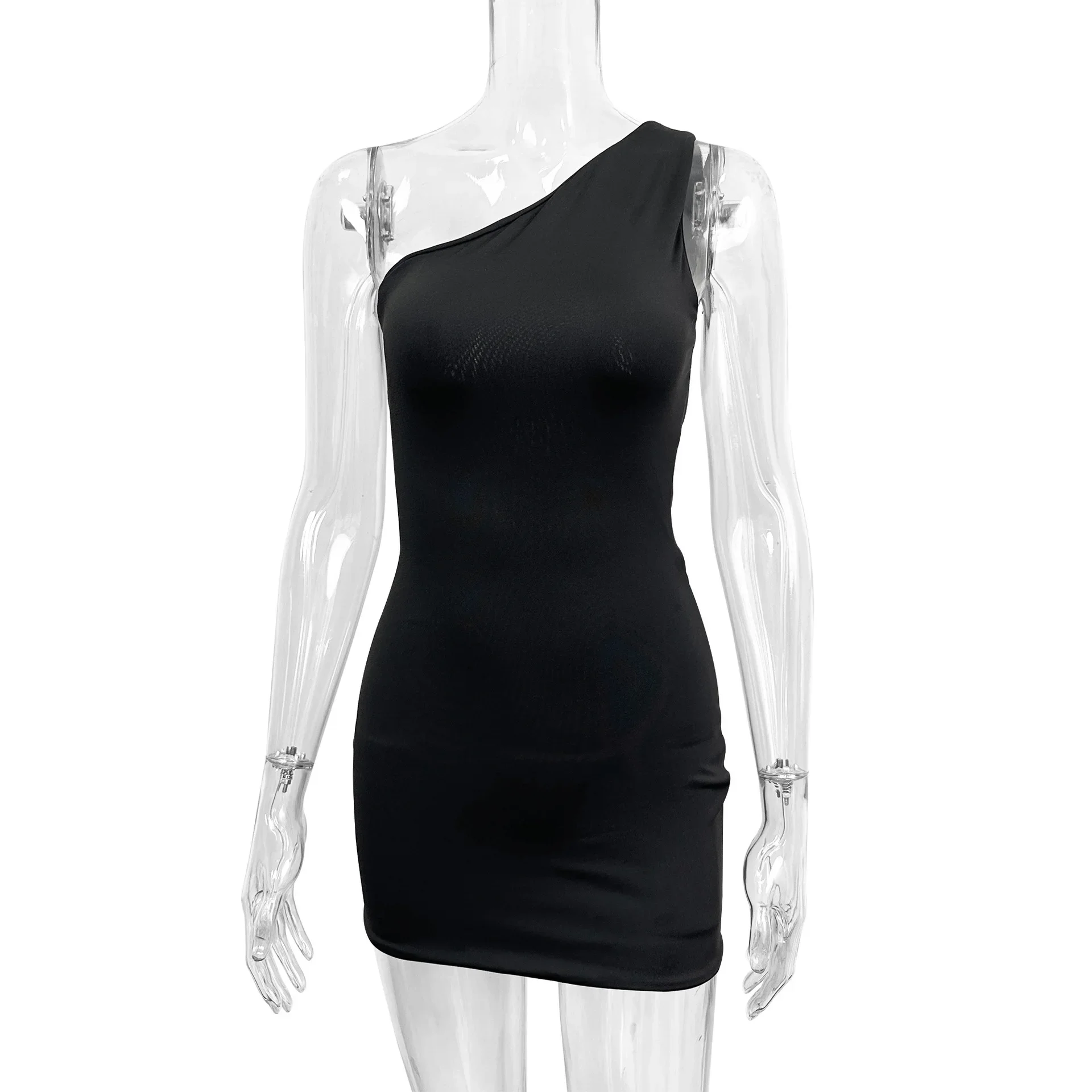 Abito sexy con gonna corta senza maniche Abito aderente scavato con spalla inclinata transfrontaliera per la stagione autunnale Moda femminile