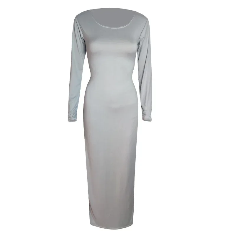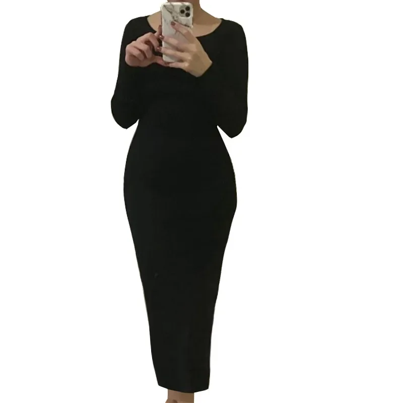 Abito sexy con scollo rotondo a maniche lunghe nero esteso Abbigliamento da donna Abito lungo dalla vestibilità comoda Stile elegante e chic del Mainland Ch 1Abito sexy con scollo rotondo a maniche lunghe nero esteso Abbigliamento da donna Abito lungo dalla vestibilità comoda Stile elegante e chic del Mainland Ch