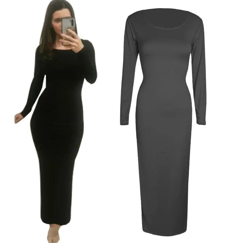 Abito sexy con scollo rotondo a maniche lunghe nero esteso Abbigliamento da donna Abito lungo dalla vestibilità comoda Stile elegante e chic del Mainland Ch 1Abito sexy con scollo rotondo a maniche lunghe nero esteso Abbigliamento da donna Abito lungo dalla vestibilità comoda Stile elegante e chic del Mainland Ch