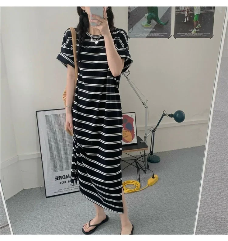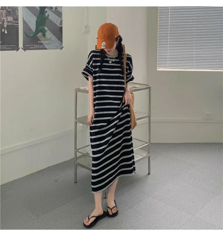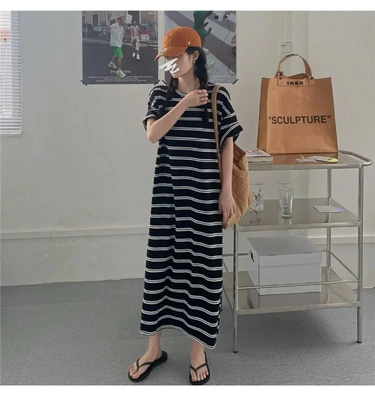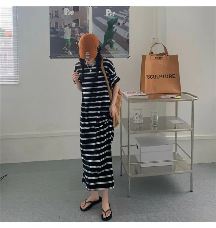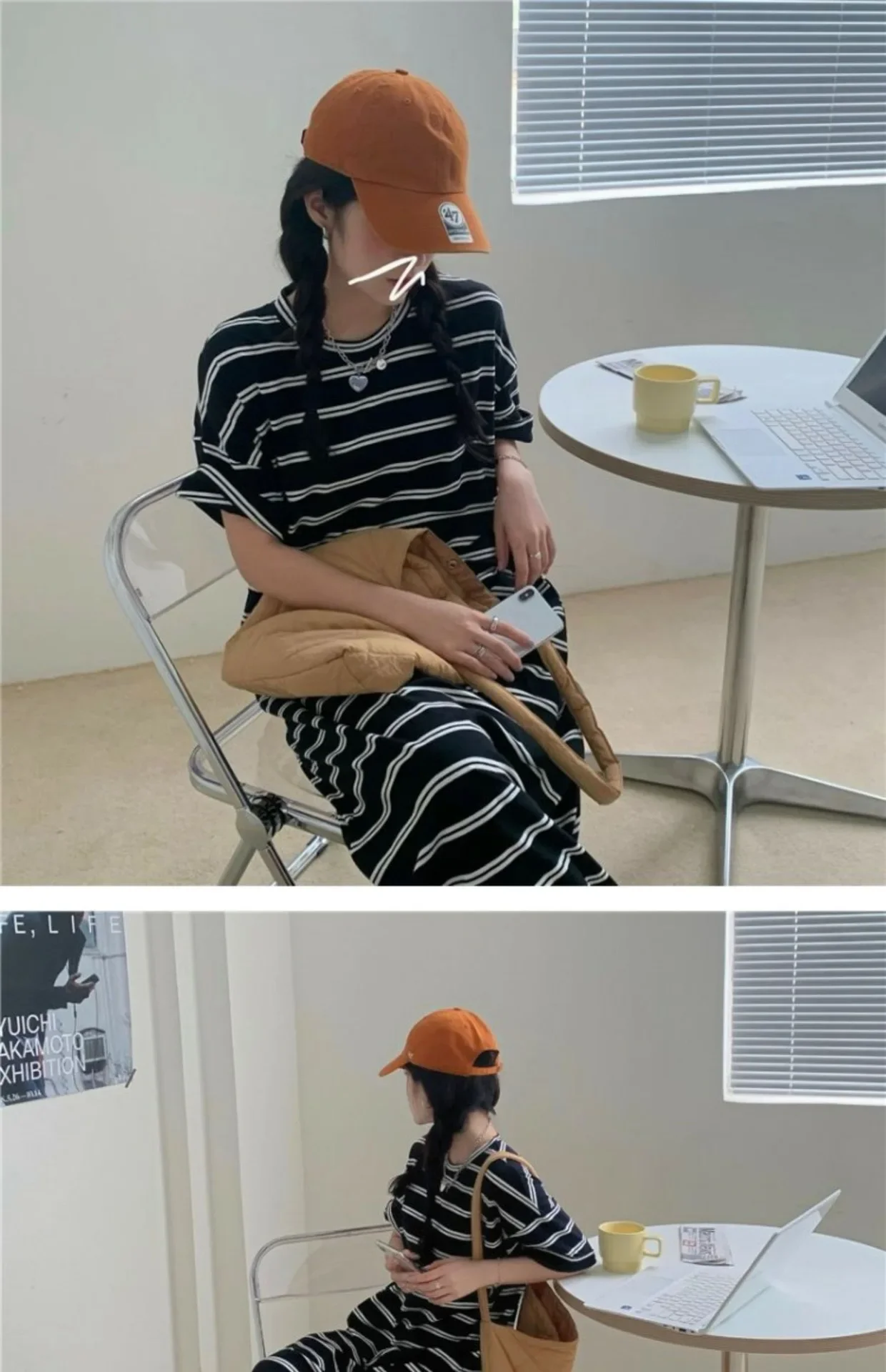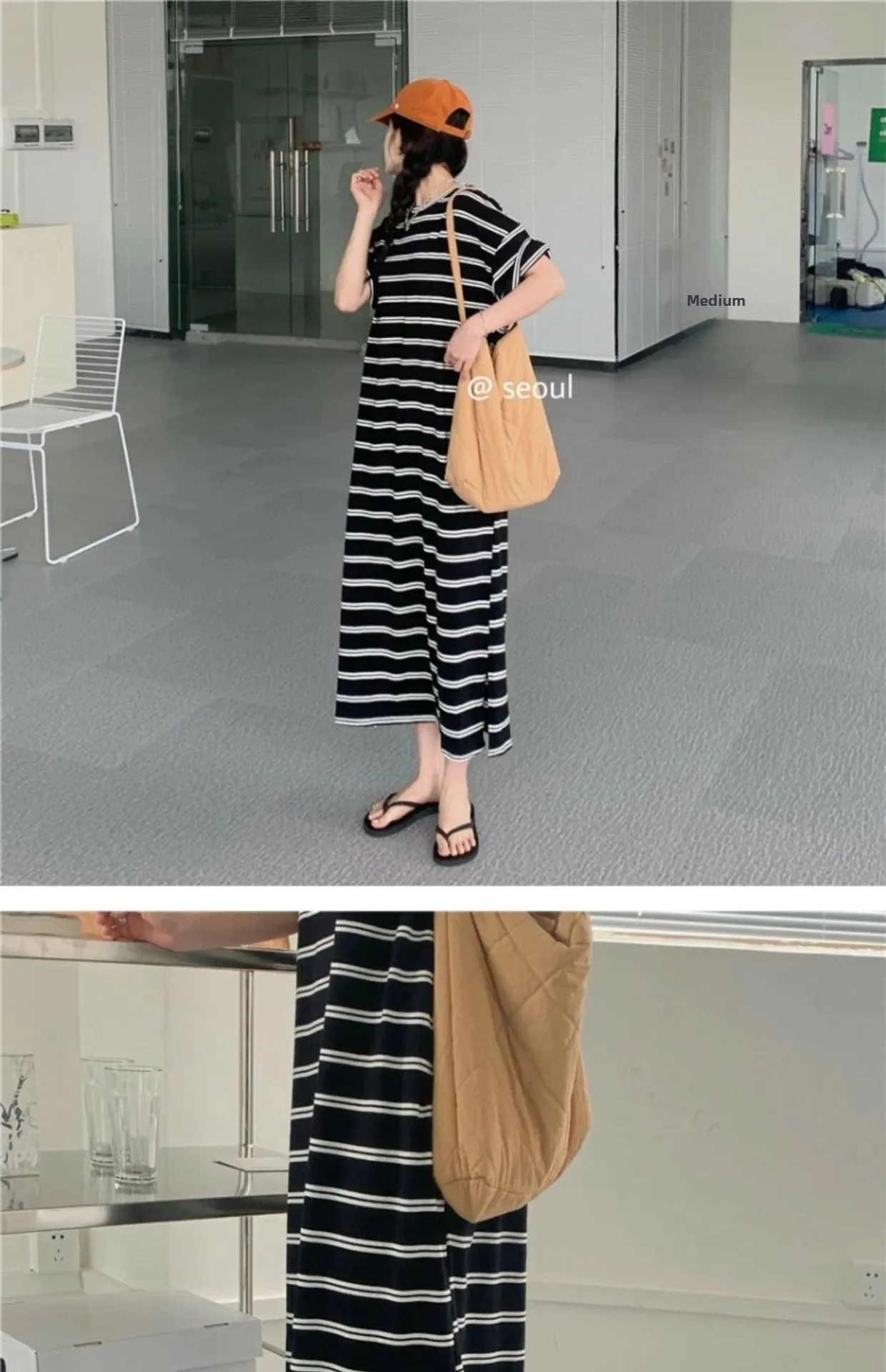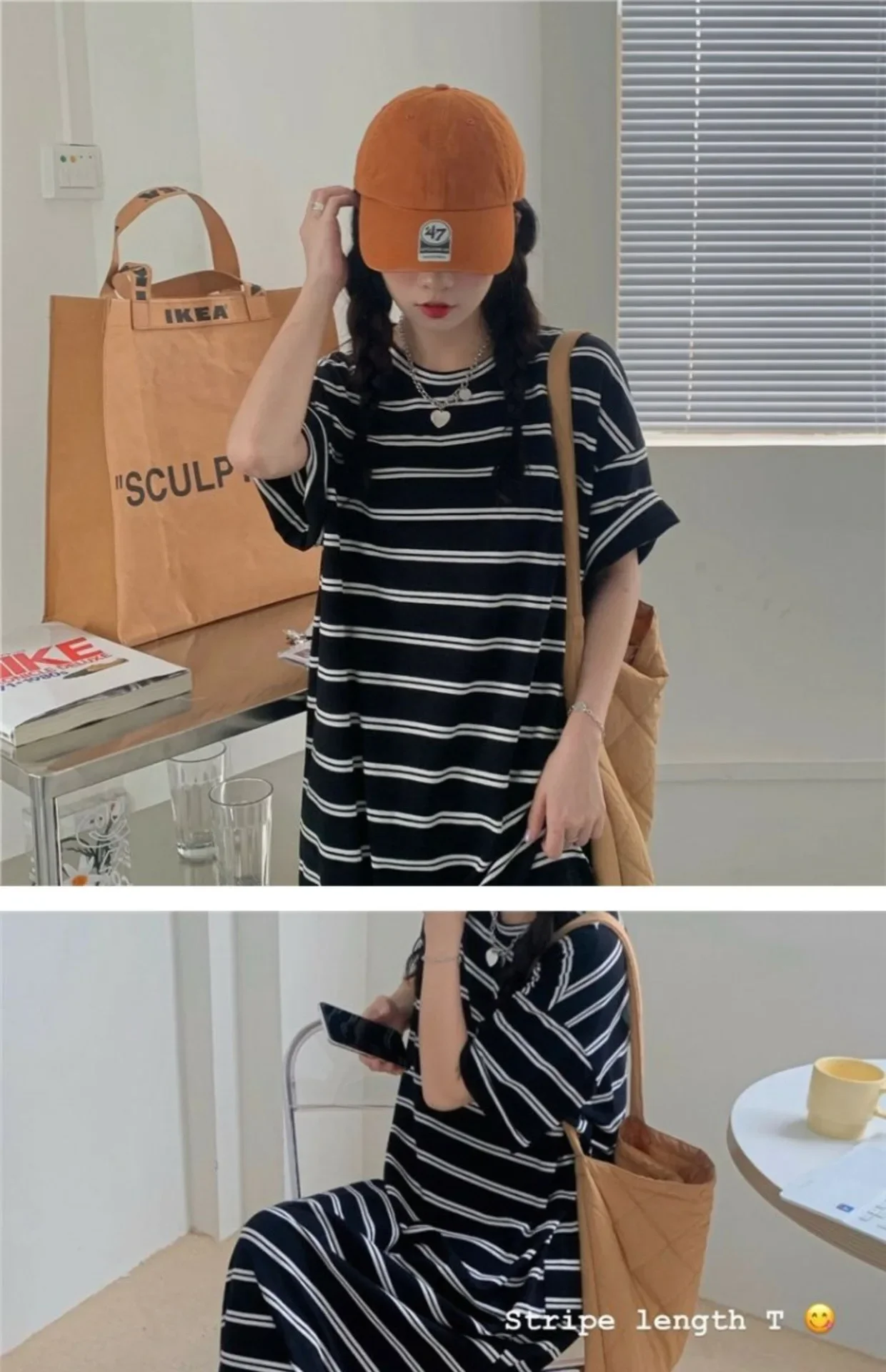 • Design in stile coreano:Questo abito T-shirt presenta un design coreano alla moda a righe, perfetto per aggiungere un tocco di eleganza al tuo guardaroba estivo.