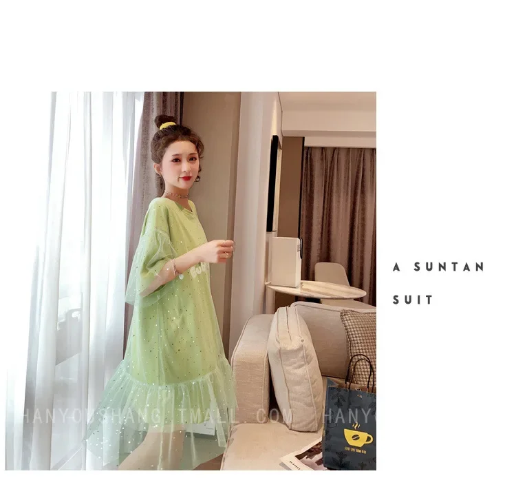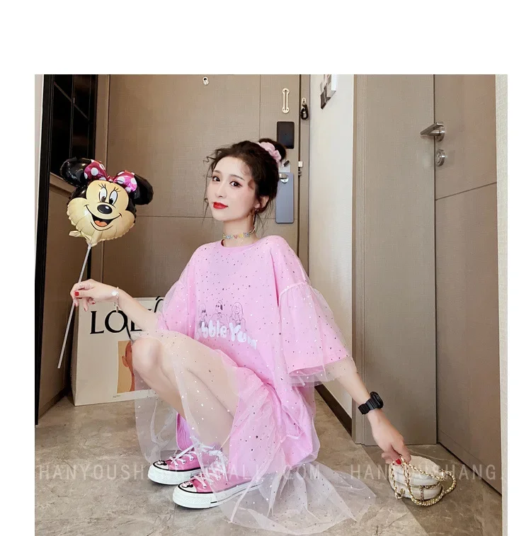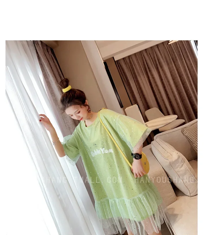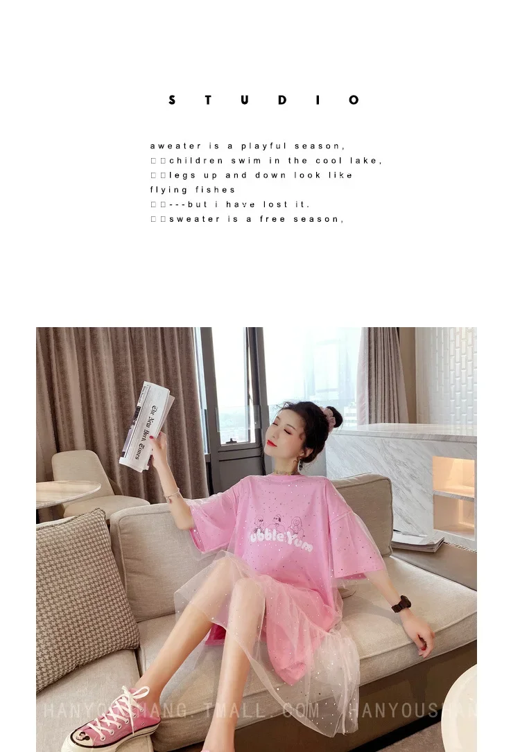 • Lunghezza del vestito lungo:Con la sua lunga lunghezza del vestito, questa T-shirt funge anche da abito chic, offrendo versatilità nello stile.
