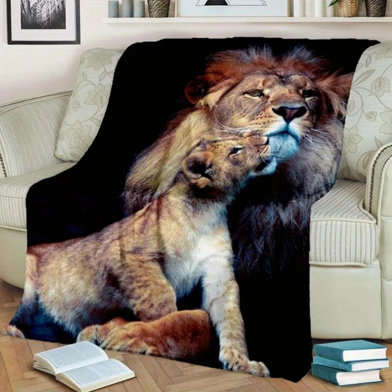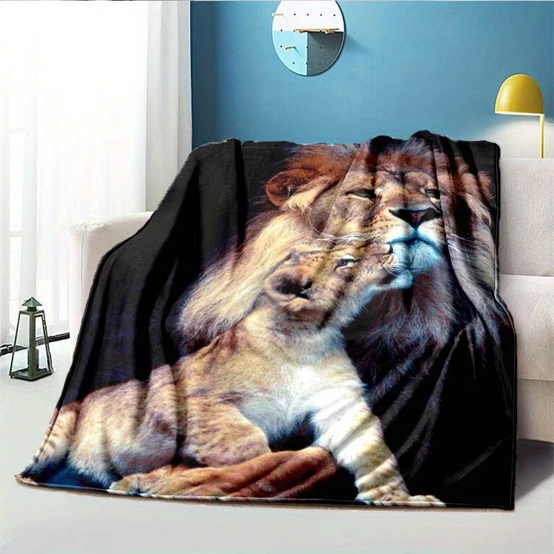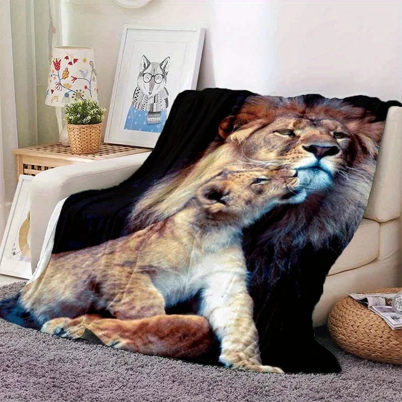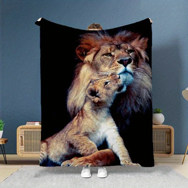 Accogliente coperta in flanella con stampa della famiglia Leone - Poliestere morbido, grande 59x79" - Perfetta per divano e letto, coperta per letto, 3D, anim 1Accogliente coperta in flanella con stampa della famiglia Leone – Poliestere morbido, grande 59×79″ – Perfetta per divano e letto, coperta per letto, 3D, anim