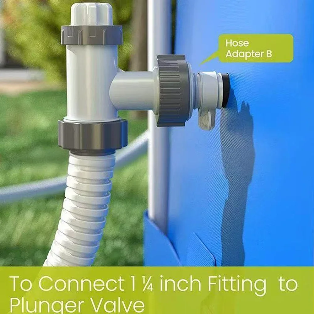 【MATELLO DI ALTA QUALITÀ】: Realizzato in plastica premium, questo adattatore per tubo pompa per piscina è progettato per una lunga durata e resistenza alla rottura.La sua tolleranza ad alta temperatura garantisce lo staia intatto anche sotto i raggi rigidi del sole.