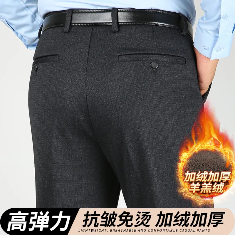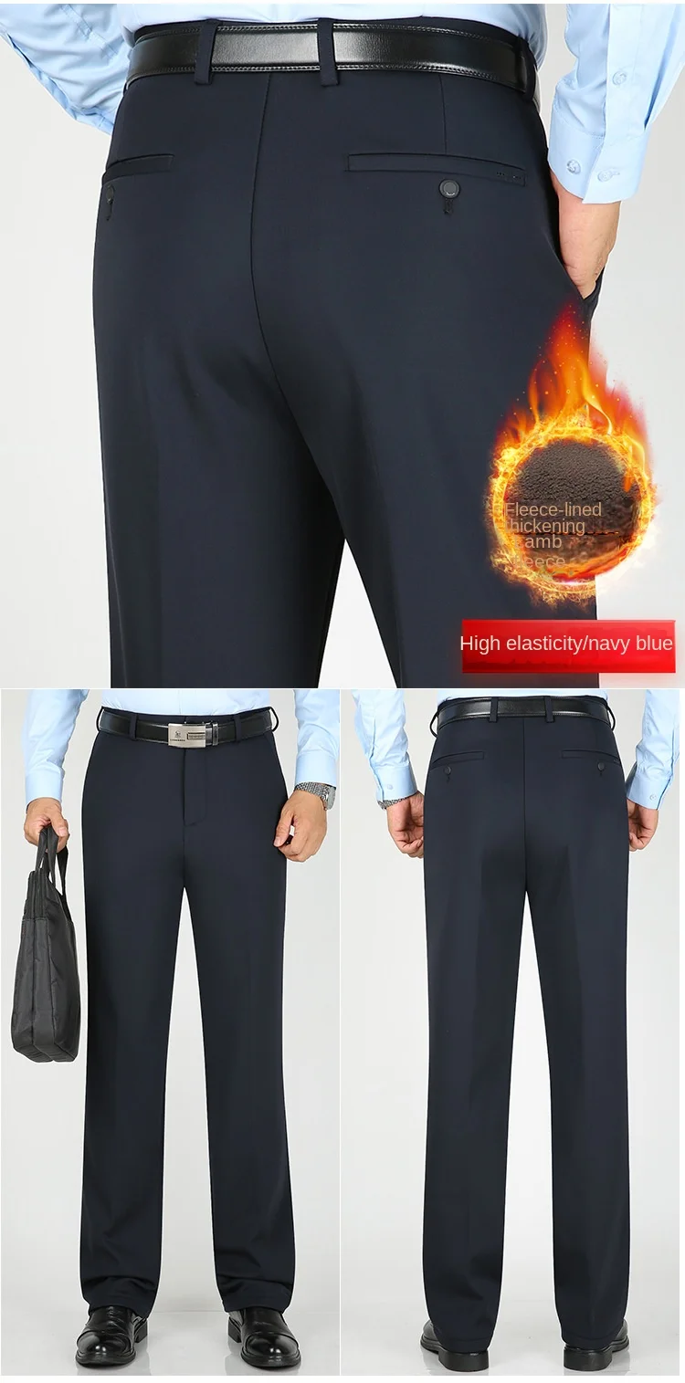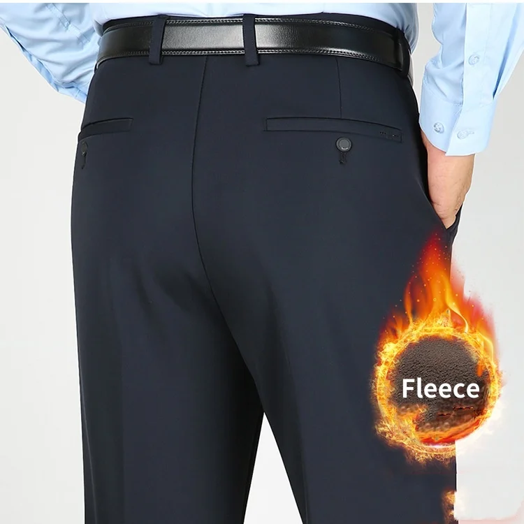 Addensare in pile invernale da uomo pantaloni a vita alta dritti piatti da lavoro d'ufficio pantaloni da tuta caldi nero grigio pantaloni casual da uomo 38 40 42 1Addensare in pile invernale da uomo pantaloni a vita alta dritti piatti da lavoro d’ufficio pantaloni da tuta caldi nero grigio pantaloni casual da uomo 38 40 42