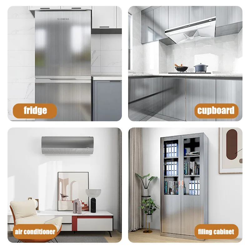 Adesivo da parete in acciaio inossidabile da 40 cm cucina soggiorno controsoffitto adesivo carta da parati frigorifero metallo spazzolato argento 1Adesivo da parete in acciaio inossidabile da 40 cm cucina soggiorno controsoffitto adesivo carta da parati frigorifero metallo spazzolato argento