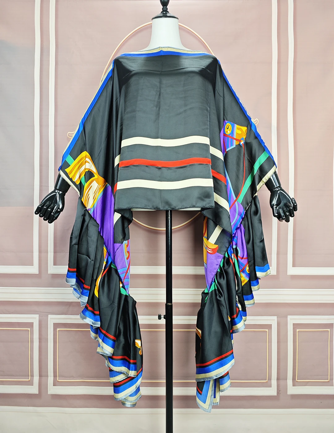 3 recensioni per Africano 2024 Moda Boho StampatoUna spalla Maniche a sbuffo Seta Stampata Caftano Camicetta Oversize Sexy Lady Beach Party Allentato Magliette e camicette