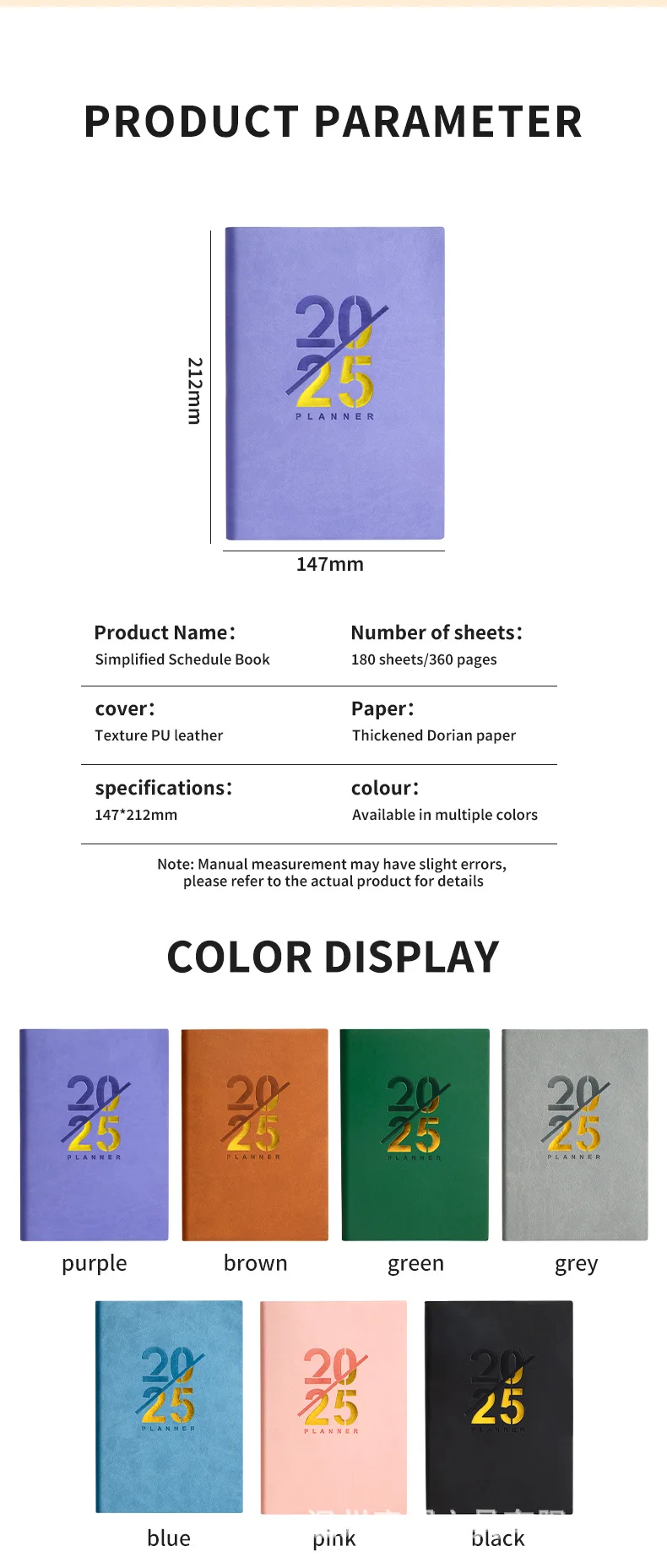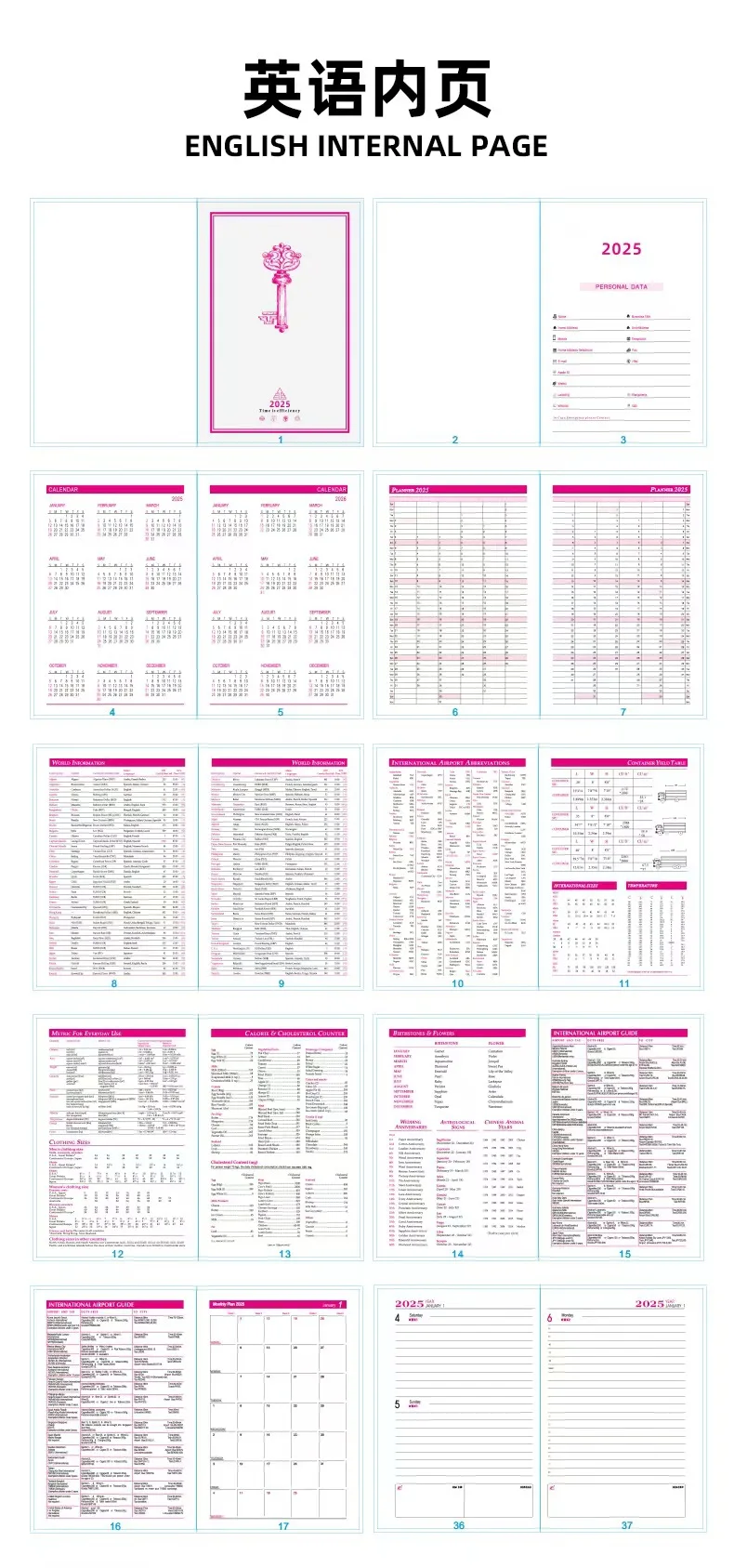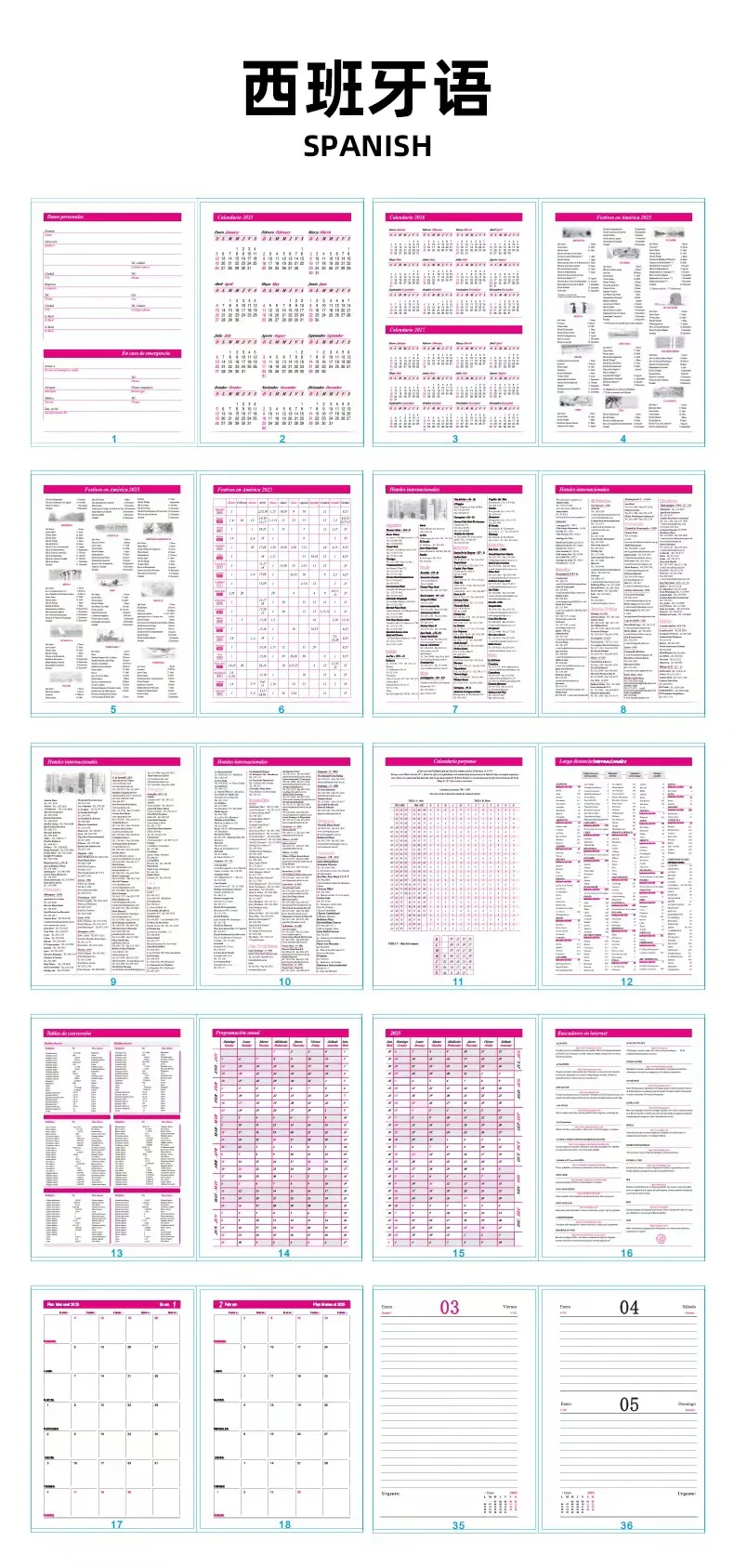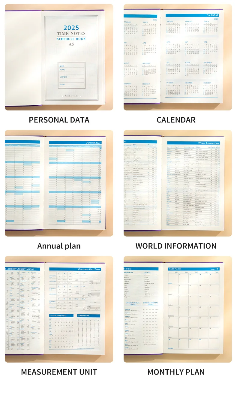 Agenda inglese spagnola Agenda 2025 Agenda per libri A5 Agenda calendario per notebook