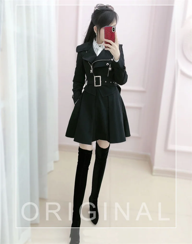 Carino, ha due strati di tessuto all’interno, dovrebbe essere abbastanza caldo per la stagione autunnale. Può essere modellato in modo diverso a seconda di quanto lo chiudi con la cerniera. La seconda cerniera sul petto è decorativa, non una tasca, ma la “gonna” ha due tasche. Ho ordinato una taglia in più per sicurezza, ma sembra abbastanza grande da poter aver ordinato la mia taglia abituale.