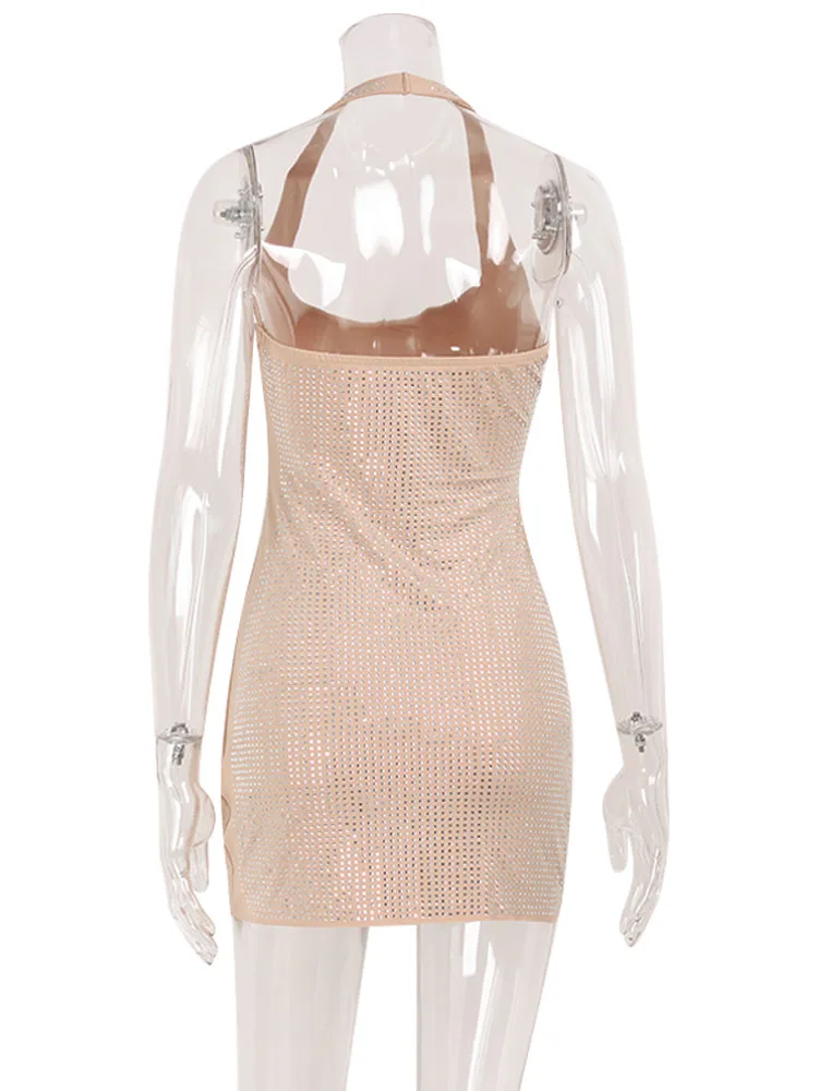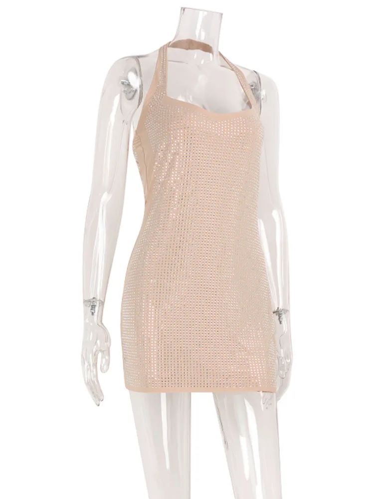 Ahagag Sexy Diamanti Donne Mini Abiti Guaina Solid Halter Slim Fit Regular Causale Streetwear Colletto Quadrato Abiti Femminili