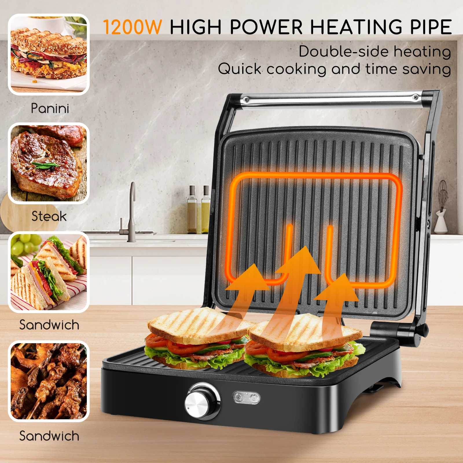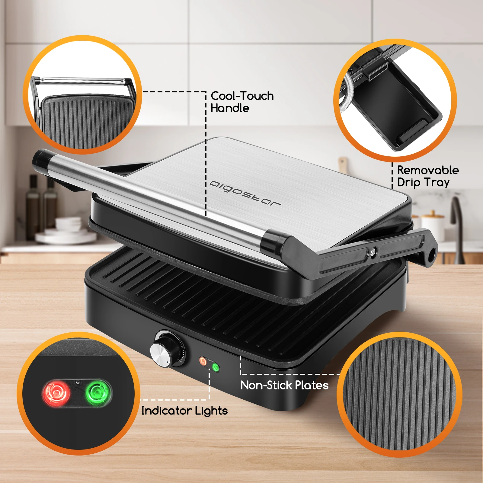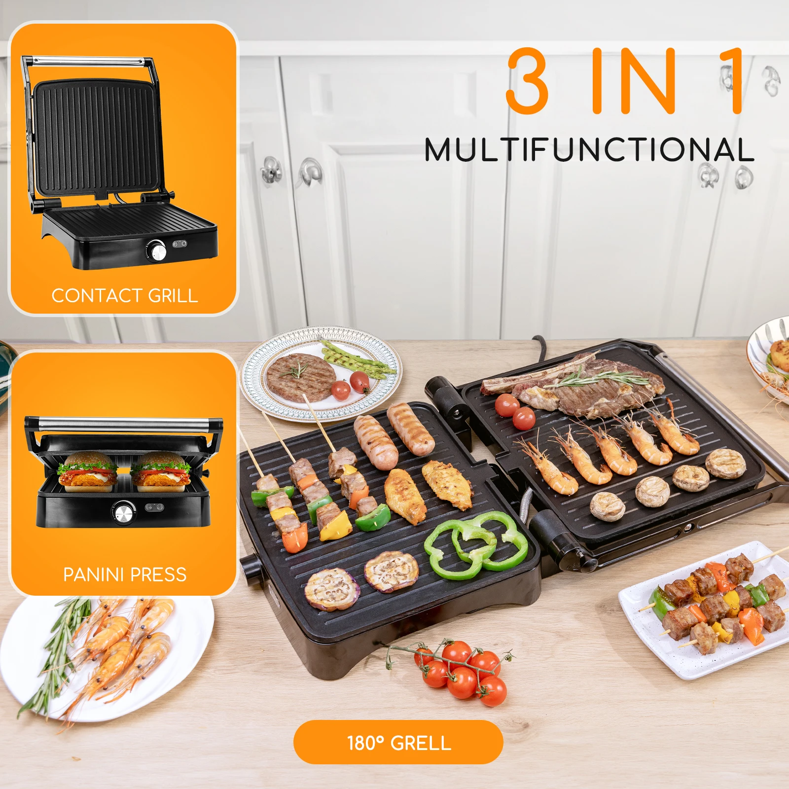 Aigostar Calore – Griglia Elettrica/Sandwich Maker/Panini Maker 3 in 1, Piastre Antiaderenti, 1800 W, Bistecchiera Elettrica con Regolatore di Temperatura, Apertura a 180°, Vassoio RaccogligocceDisponibilità: 7 disponibili