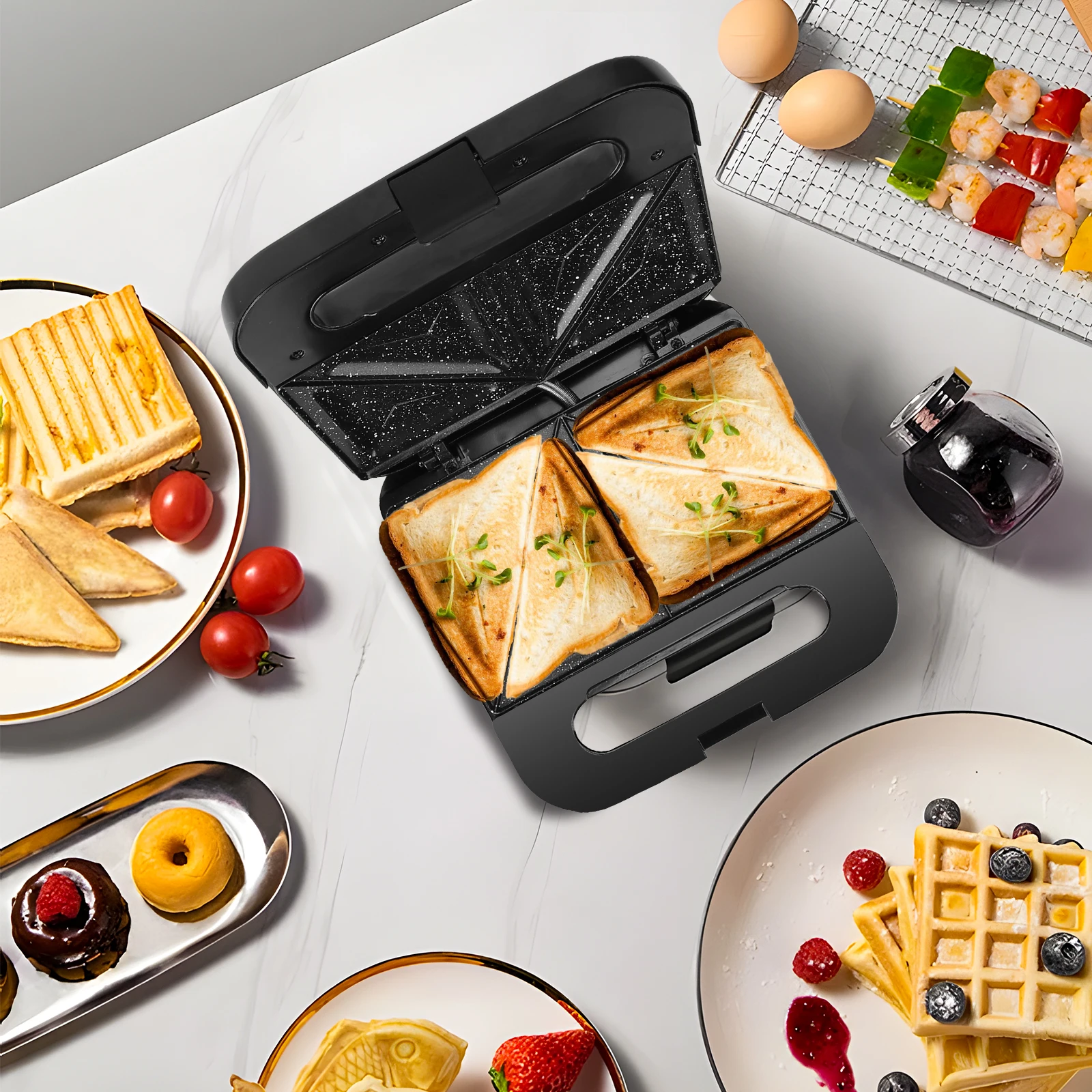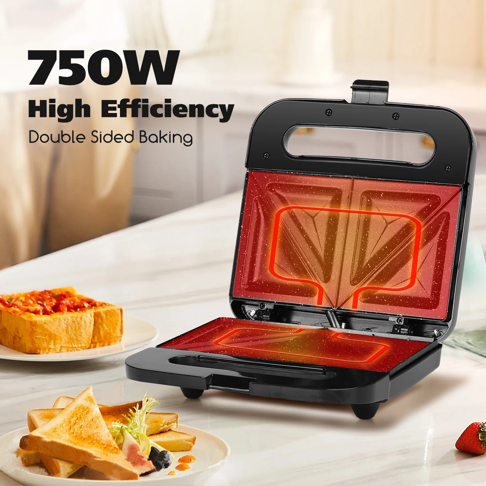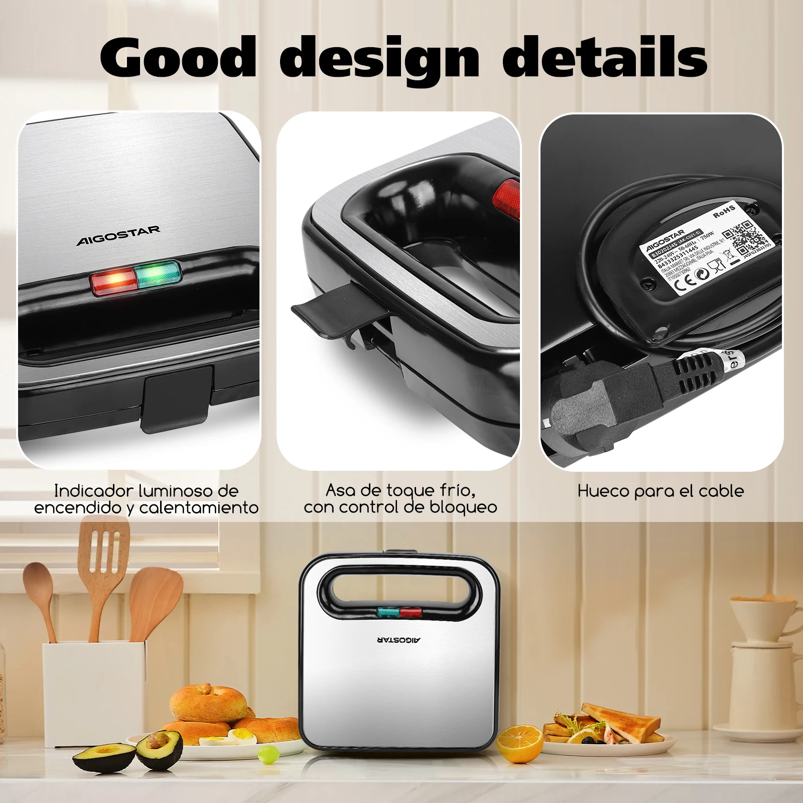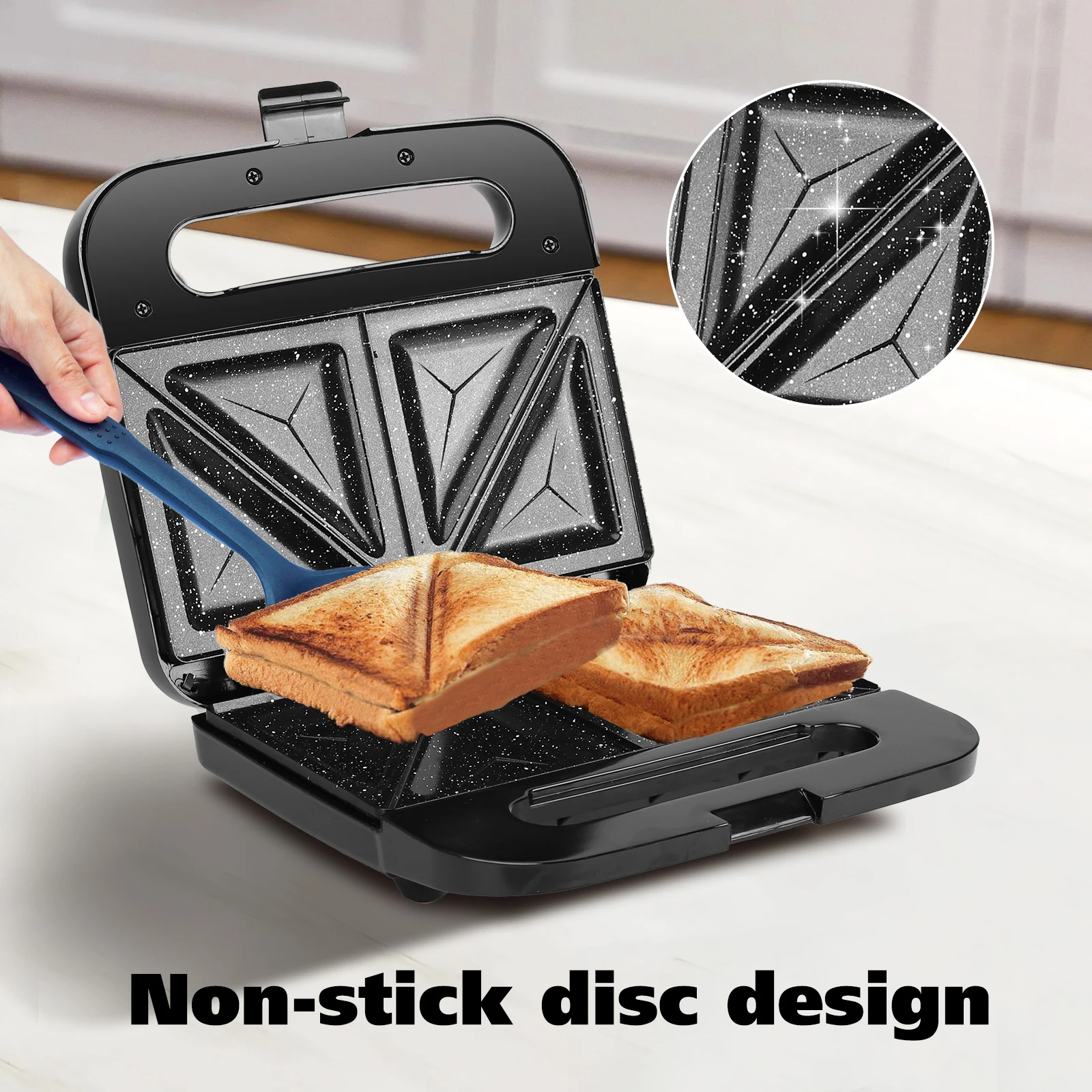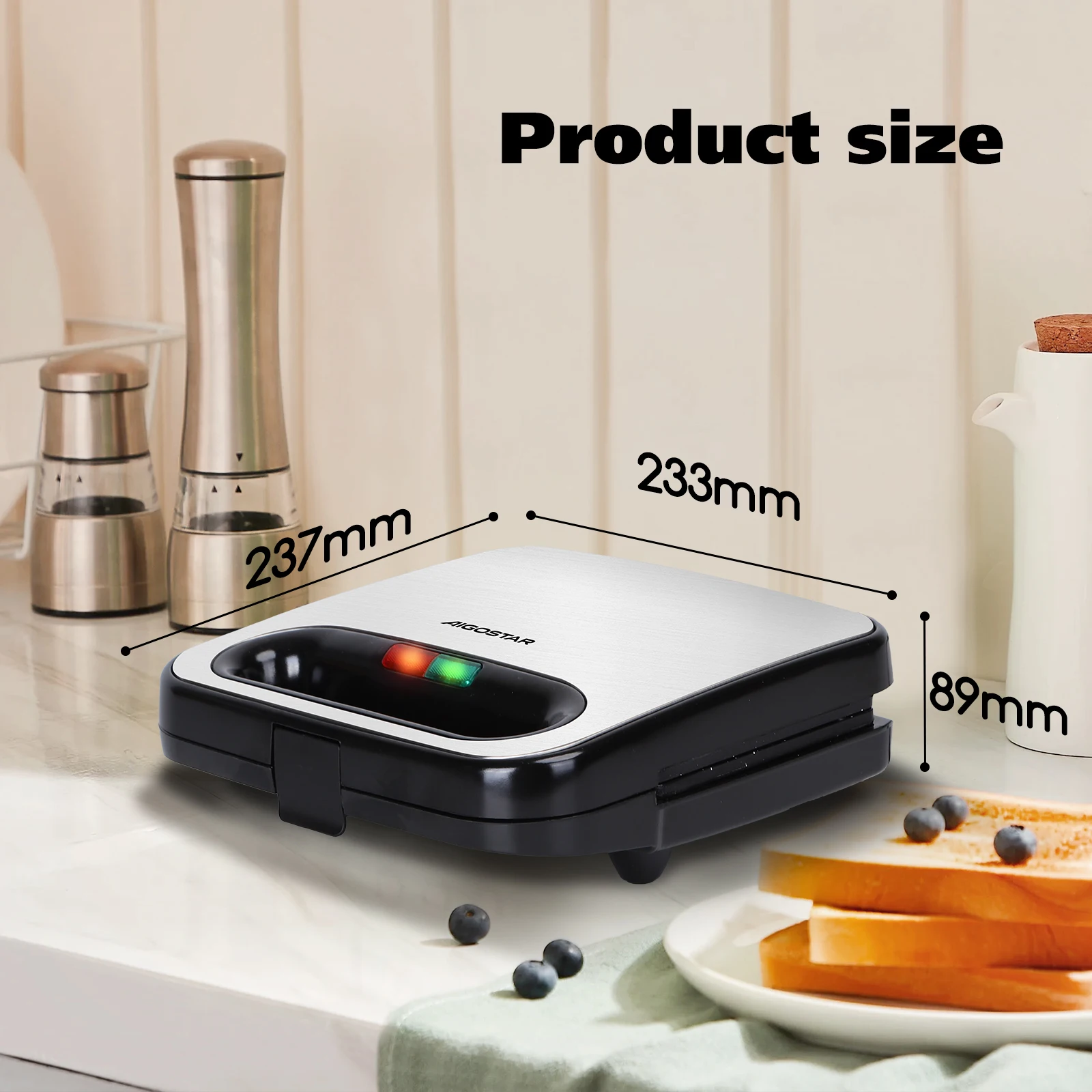 1948 perfect sandbiches】grazie ai grandi piatti da 9×5.2 pollici del tostapane, puoi realizzare 2 deliziosi panini o 4 angoli sandwich triangolari per la tua famiglia e i tuoi amici contemporaneamente. Scanalature rialzate nei piatti da forno sigillano i bordi del pane per mantenere gli ingredienti all’interno e prevenire che i panini si attaccano agli altri