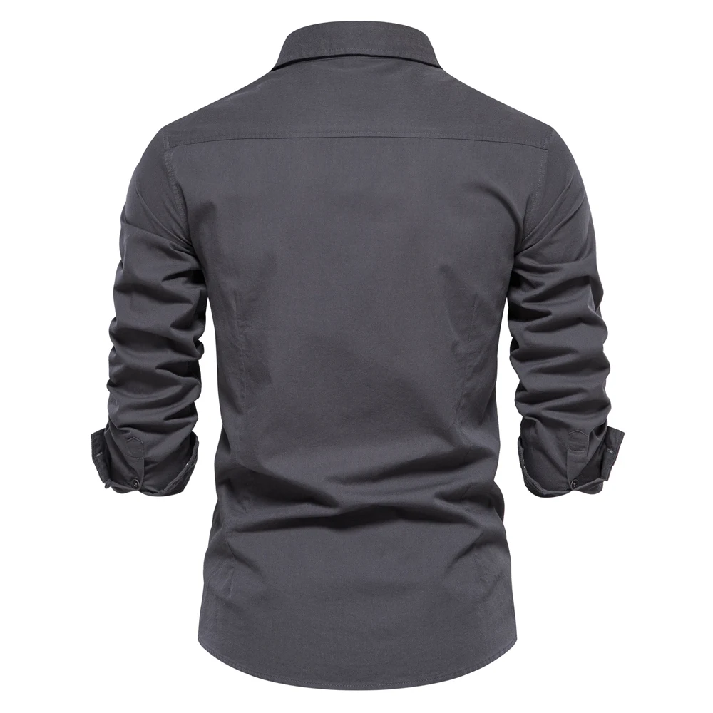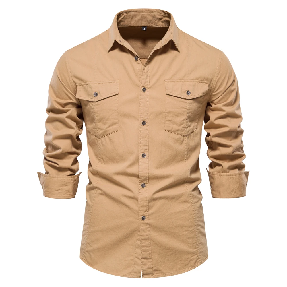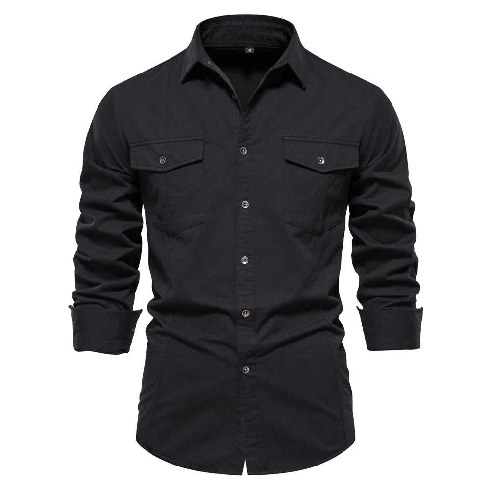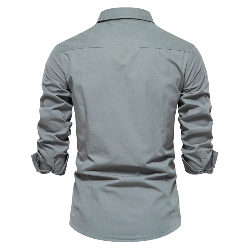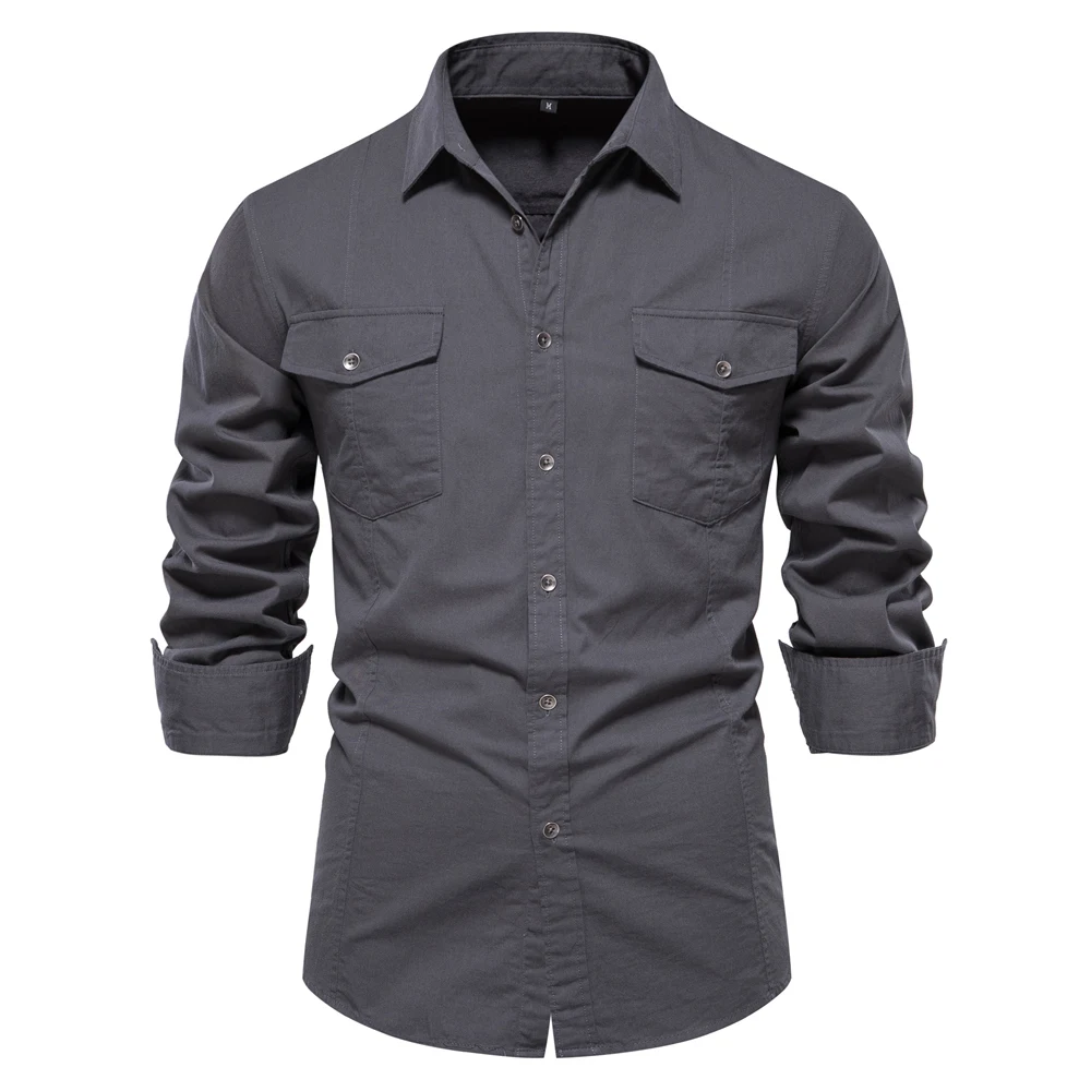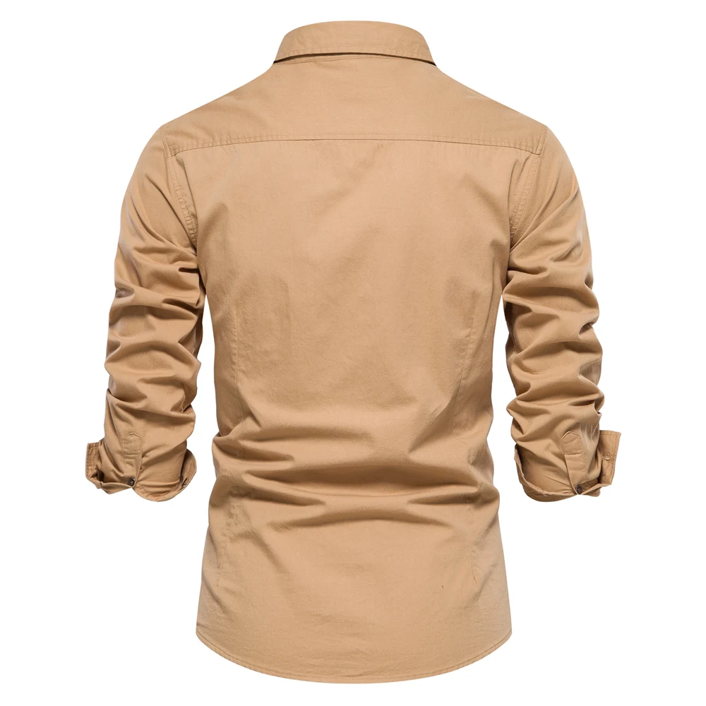AIOPESON 2023 nuovo autunno stile militare 100% cotone camicia tascabile per uomo tinta unita Slim Casual uomo camicie manica lunga