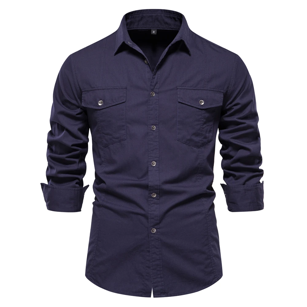 AIOPESON 2023 nuovo autunno stile militare 100% cotone camicia tascabile per uomo tinta unita Slim Casual uomo camicie manica lunga