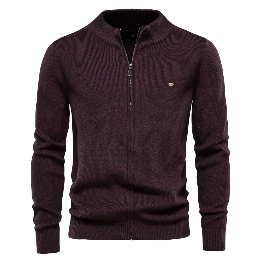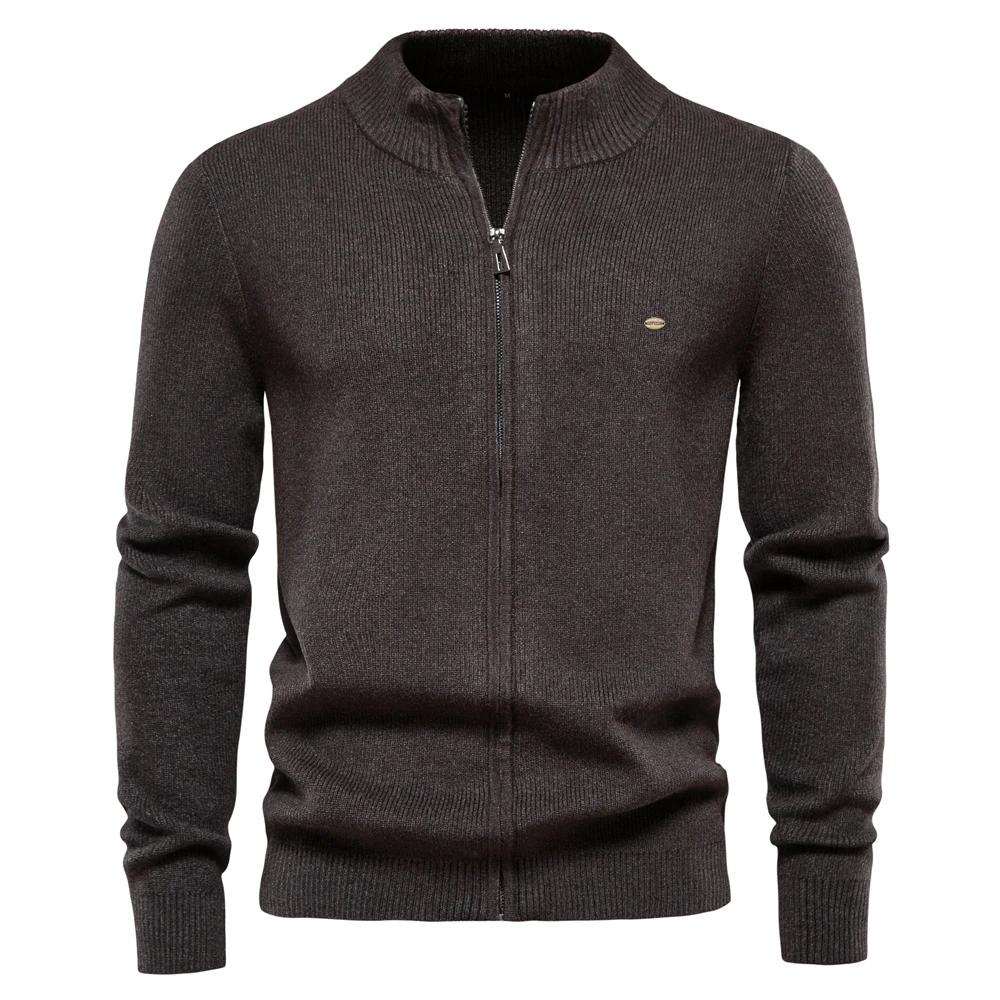 AIOPESON Cardigan da uomo tinta unita con cerniera maglione di base maschile Casual di alta qualità nuovi Cardigan autunnali per abbigliamento maschile