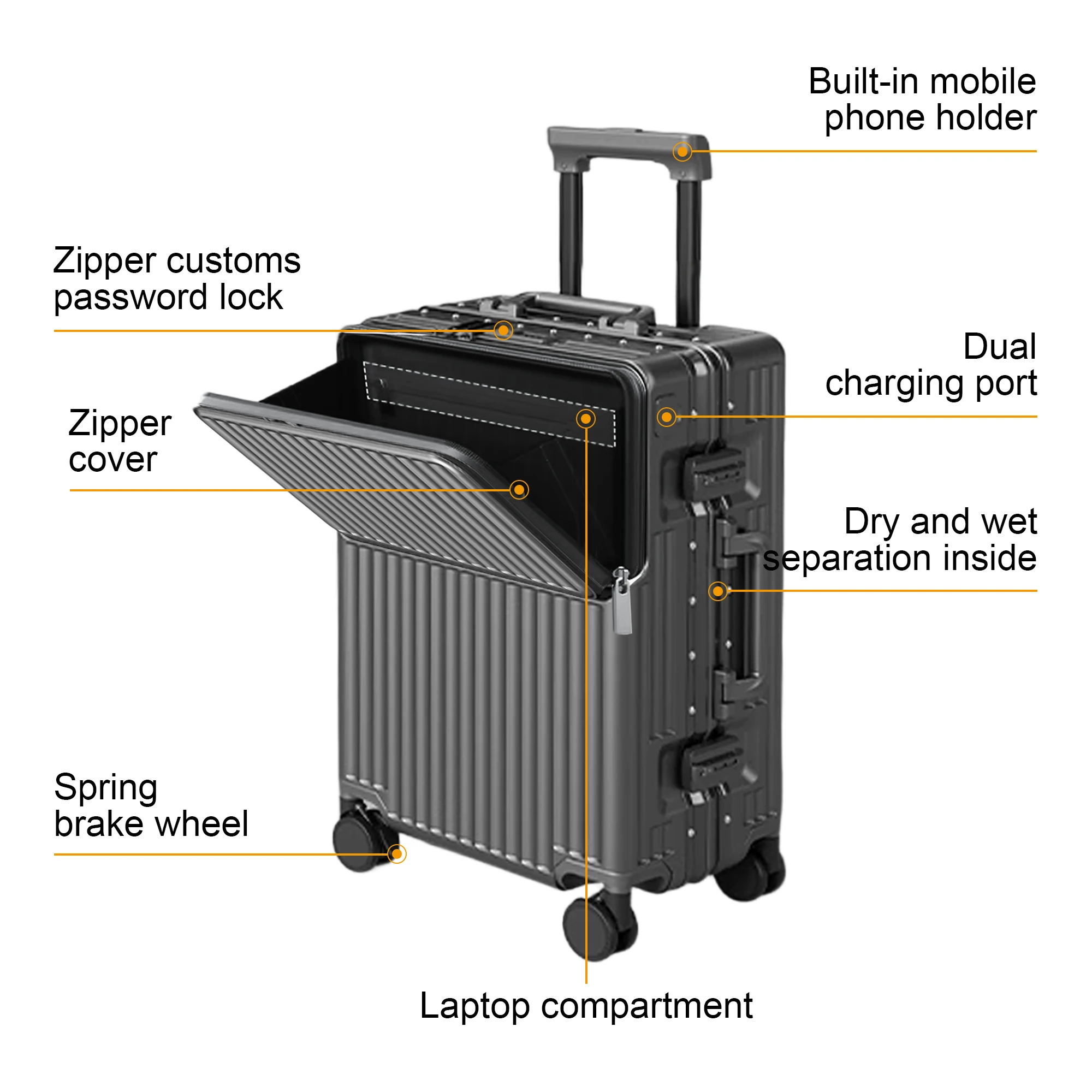【Serratura di sicurezza intelligente】Lucchetto con password TSA adottante + cerniera antifurto laterale, gli oggetti importanti possono essere nascosti e memorizzati;la scatola ha una nuova struttura del telaio in alluminio anti-pannello per evitare il disimballaggio violento, particolarmente adatta per viaggi interna a lunga distanza per garantire la sicurezza della proprietà.