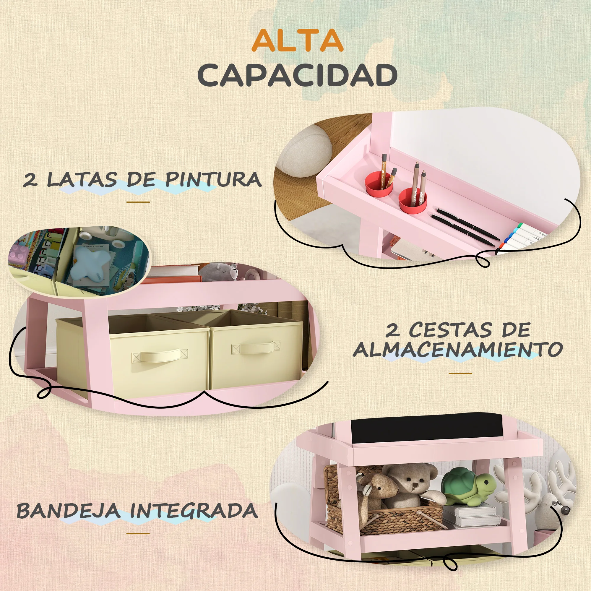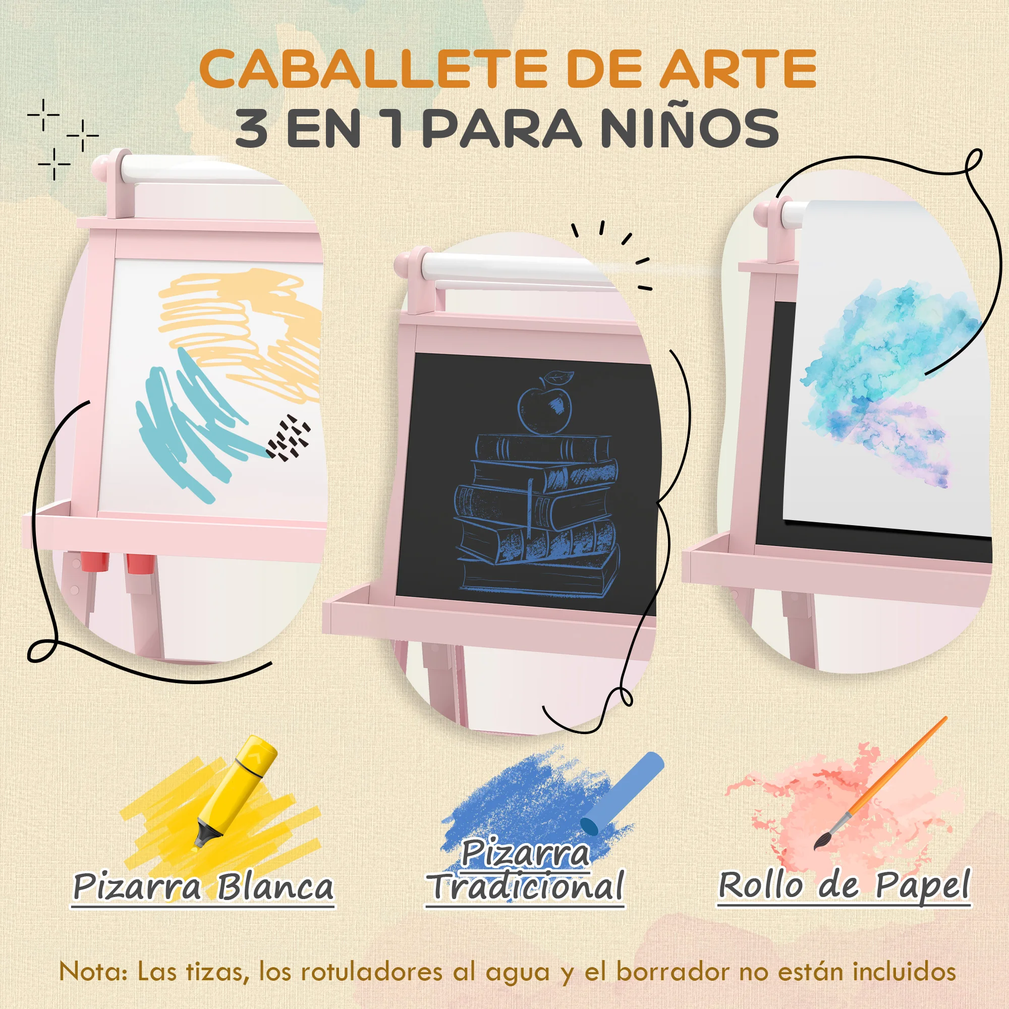 Caratteristiche:● Design di lavagna per bambini 3 in 1 con lavagna, lavagna magnetica e rotolo di carta● Il rotolo di carta sulla parte superiore facilita l’accesso ai bambini● La lavagna bifacciale con cavalletto comprende 2 vasi per pennelli e matite colorate, offrendo una buona organizzazione e un facile accesso ai materiali● Il cavalletto per bambini è dotato di due cestelli che offrono ampio spazio per riporre i materiali di verniciatura● Realizzato in MDF con struttura a forma di A per maggiore resistenza e stabilità● Assemblaggio richiesto