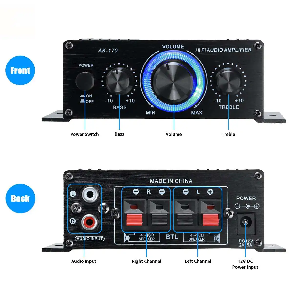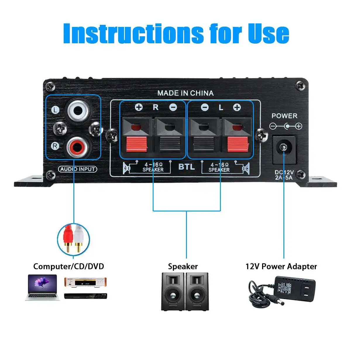 Nota: Se desideri utilizzare come amplificatore domestico, devi acquistare un adattatore di alimentazione a commutazione da 220 V a 12 V (2 A-5 A).