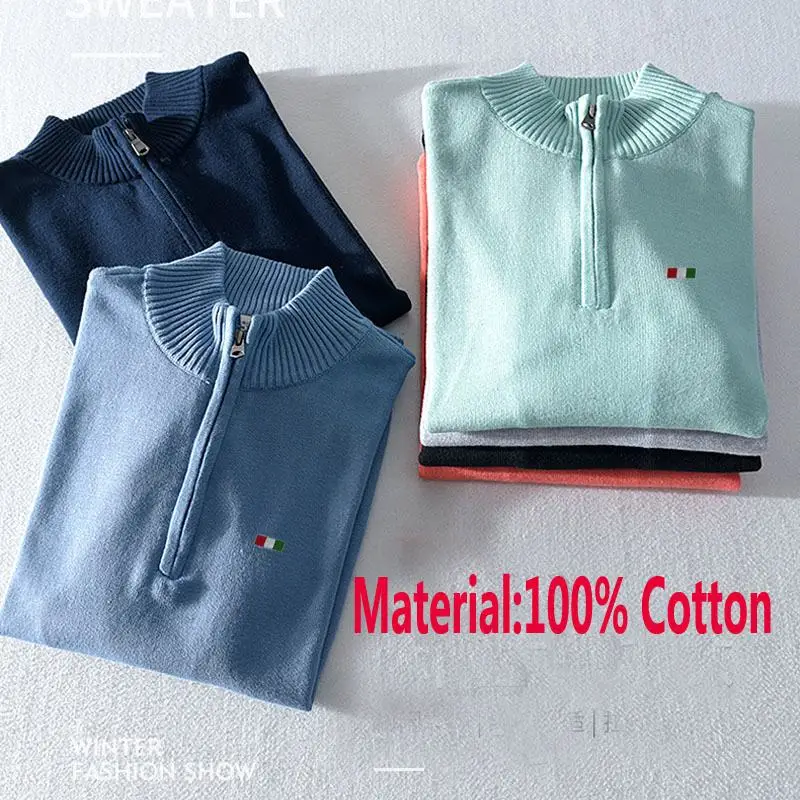 Alta qualità 100% cotone autunno inverno uomo manica lunga dolcevita maglioni Casual vestiti lavorati a maglia cappotti spessi moda maschile top 1Alta qualità 100% cotone autunno inverno uomo manica lunga dolcevita maglioni Casual vestiti lavorati a maglia cappotti spessi moda maschile top