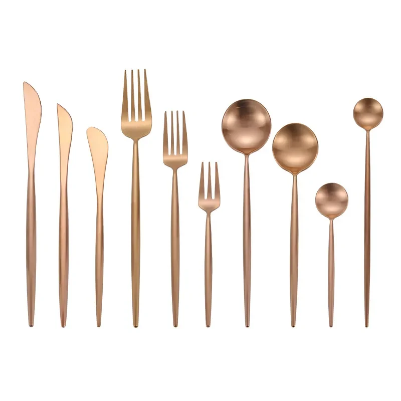 Alta qualità opaca 18/10 nero oro argento bianco rosa blu verde acciaio inossidabile stoviglie in stile occidentale coltello cucchiaio forchetta cucchiaio da caffè bacchette set di sicurezza per lavastoviglie