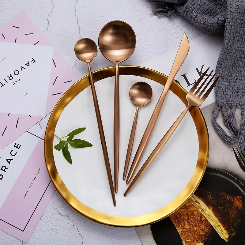Alta qualità opaca 18/10 nero oro argento bianco rosa blu verde acciaio inossidabile stoviglie in stile occidentale coltello cucchiaio forchetta cucchiaio da caffè bacchette set di sicurezza per lavastoviglie 1Alta qualità opaca 18/10 nero oro argento bianco rosa blu verde acciaio inossidabile stoviglie in stile occidentale coltello cucchiaio forchetta cucchiaio da caffè bacchette set di sicurezza per lavastoviglie