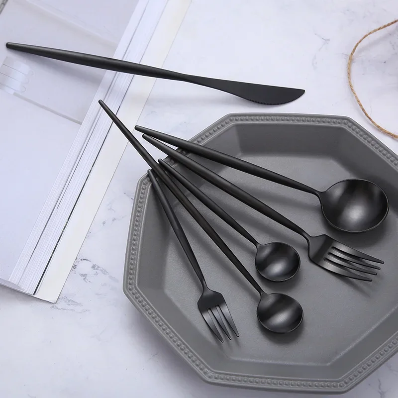 Alta qualità opaca 18/10 nero oro argento bianco rosa blu verde acciaio inossidabile stoviglie in stile occidentale coltello cucchiaio forchetta cucchiaio da caffè bacchette set di sicurezza per lavastoviglie 1Alta qualità opaca 18/10 nero oro argento bianco rosa blu verde acciaio inossidabile stoviglie in stile occidentale coltello cucchiaio forchetta cucchiaio da caffè bacchette set di sicurezza per lavastoviglie