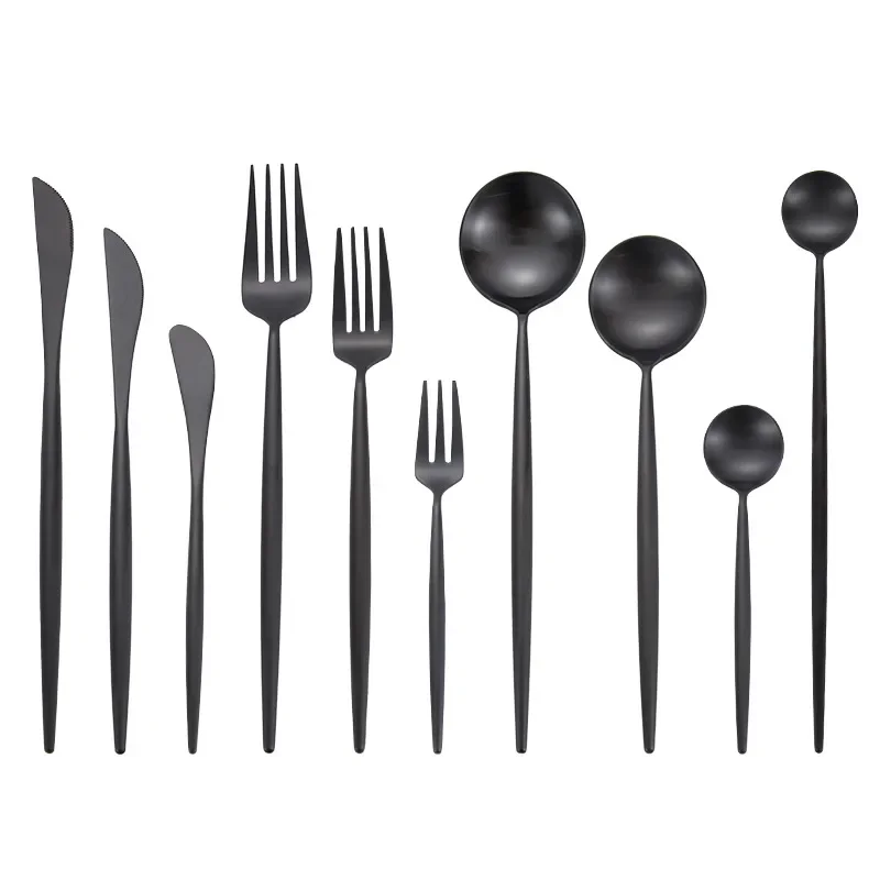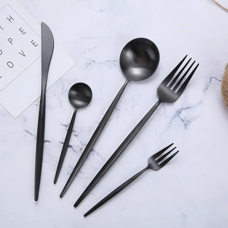 Alta qualità opaca 18/10 nero oro argento bianco rosa blu verde acciaio inossidabile stoviglie in stile occidentale coltello cucchiaio forchetta cucchiaio da caffè bacchette set di sicurezza per lavastoviglie