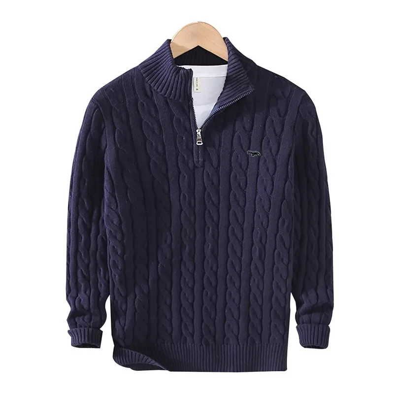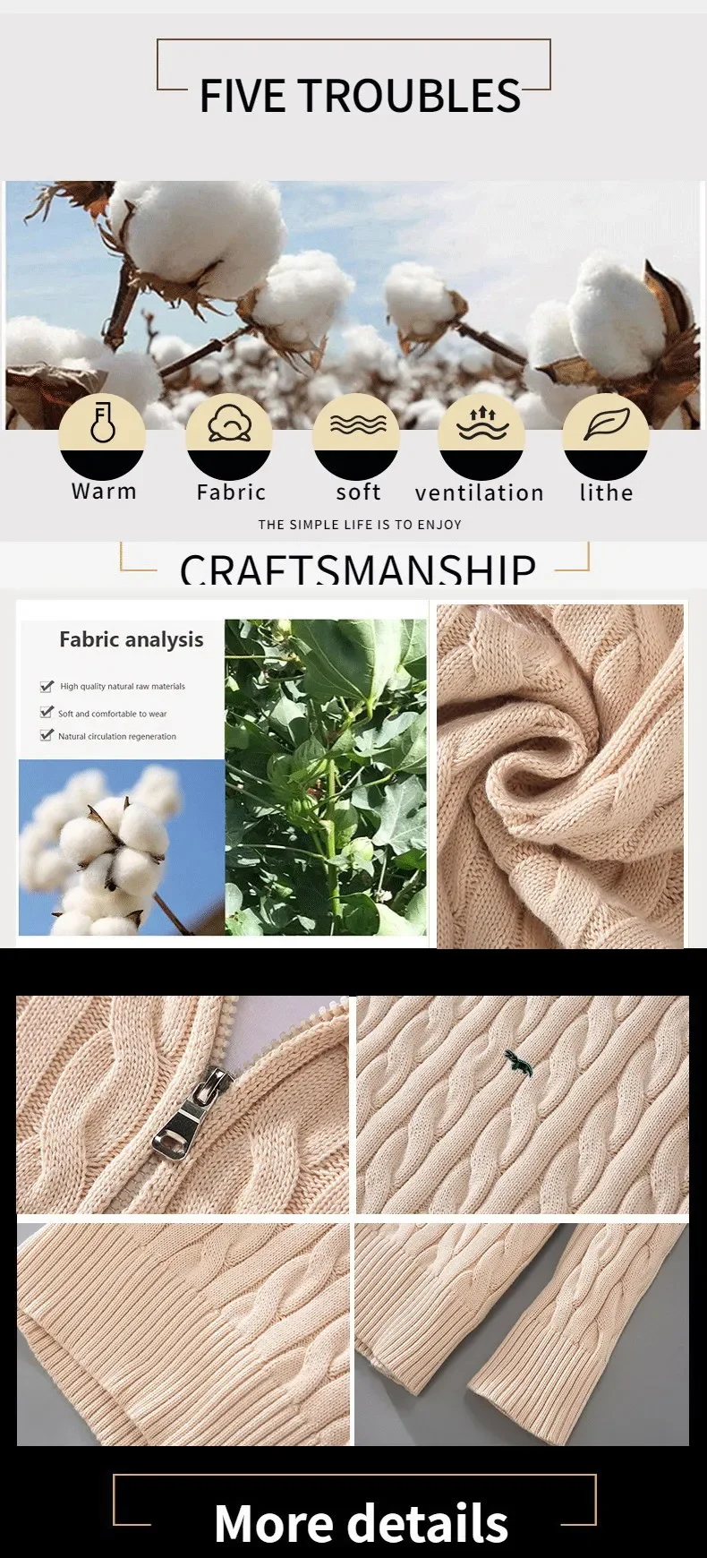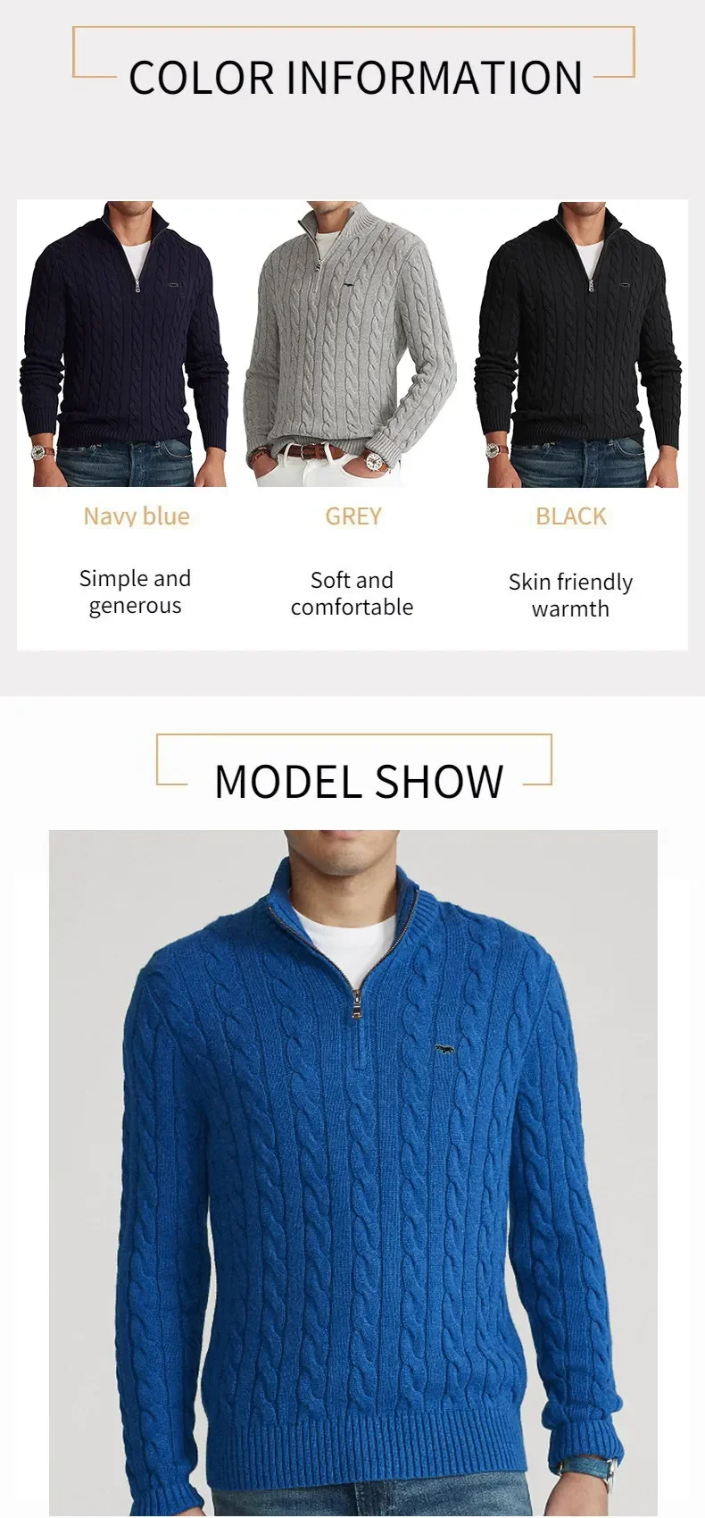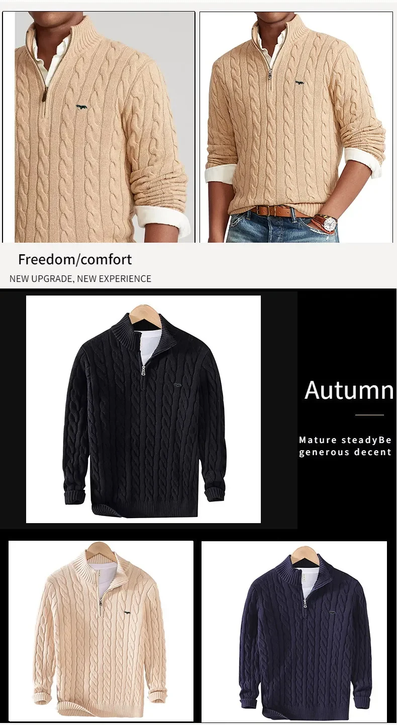 Alta qualità Stesso marchio da uomo Autunno Inverno Cavo 100% cotone lavorato a maglia Maglioni Cerniera Collo finto Pullover Pull Homme 8509