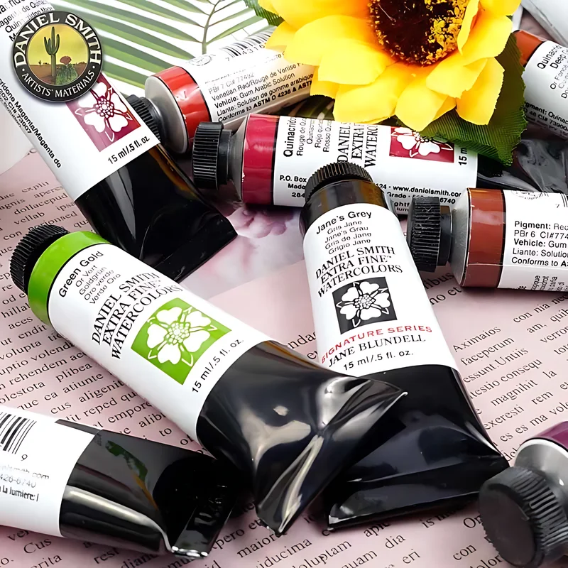DANIEL SMITH, è il produttore innovativo di bellissimi acquerelli per artisti in tutto il mondo, ora offre un tubo più piccolo da 5ml in 88 dei loro colori più popolari, inclusi alcuni dei loro colori dell’acqua PrimaTek. DANIEL SMITH rende la più grande gamma di acquerelli di qualsiasi produttore, più di 240 colori sono disponibili nei tubi originali da 15ml. La collezione di colori 240 + include l’emozionante PrimaTek watercolors realizzata con minerali (come ametista) più altri colori unici (come Moonglow) non disponibili da altri, E acquerelli luminescenti che consentono agli artisti di catturare i colori luminescenti che vivono in natura che gli acquerelli regolari non possono catturare!