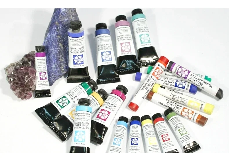 DANIEL SMITH, è il produttore innovativo di bellissimi acquerelli per artisti in tutto il mondo, ora offre un tubo più piccolo da 5ml in 88 dei loro colori più popolari, inclusi alcuni dei loro colori dell’acqua PrimaTek. DANIEL SMITH rende la più grande gamma di acquerelli di qualsiasi produttore, più di 240 colori sono disponibili nei tubi originali da 15ml. La collezione di colori 240 + include l’emozionante PrimaTek watercolors realizzata con minerali (come ametista) più altri colori unici (come Moonglow) non disponibili da altri, E acquerelli luminescenti che consentono agli artisti di catturare i colori luminescenti che vivono in natura che gli acquerelli regolari non possono catturare!