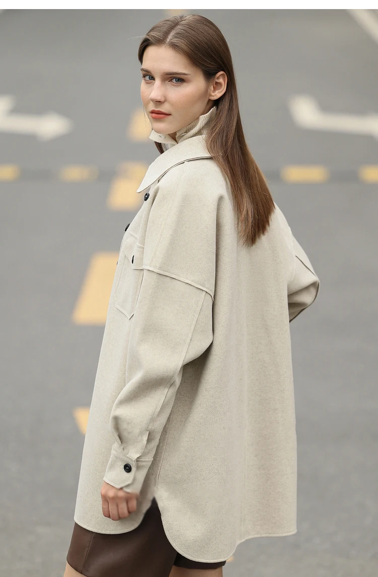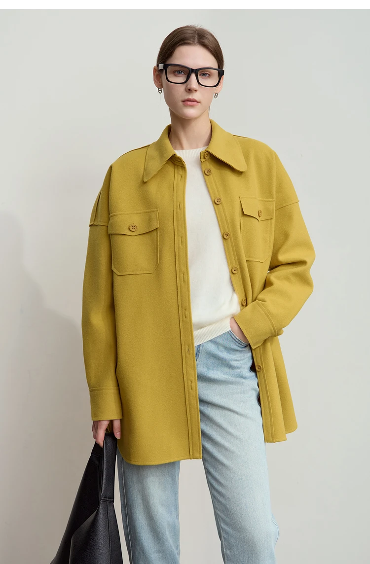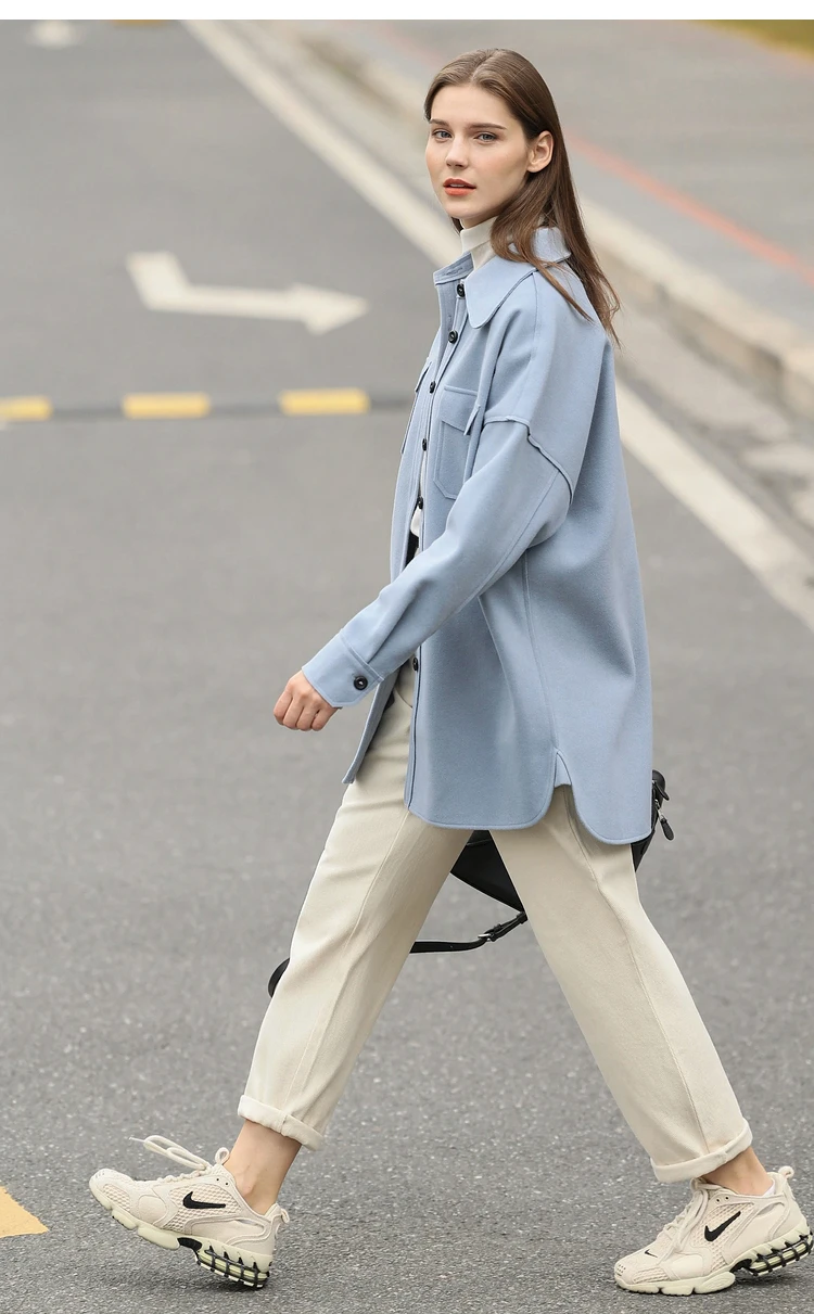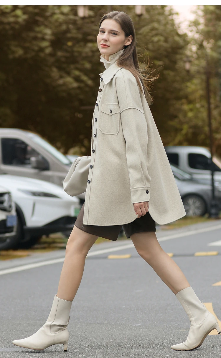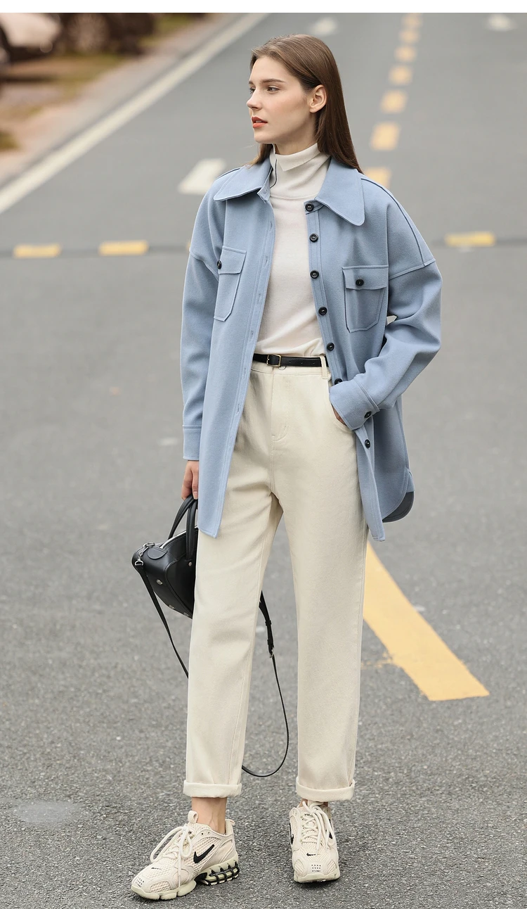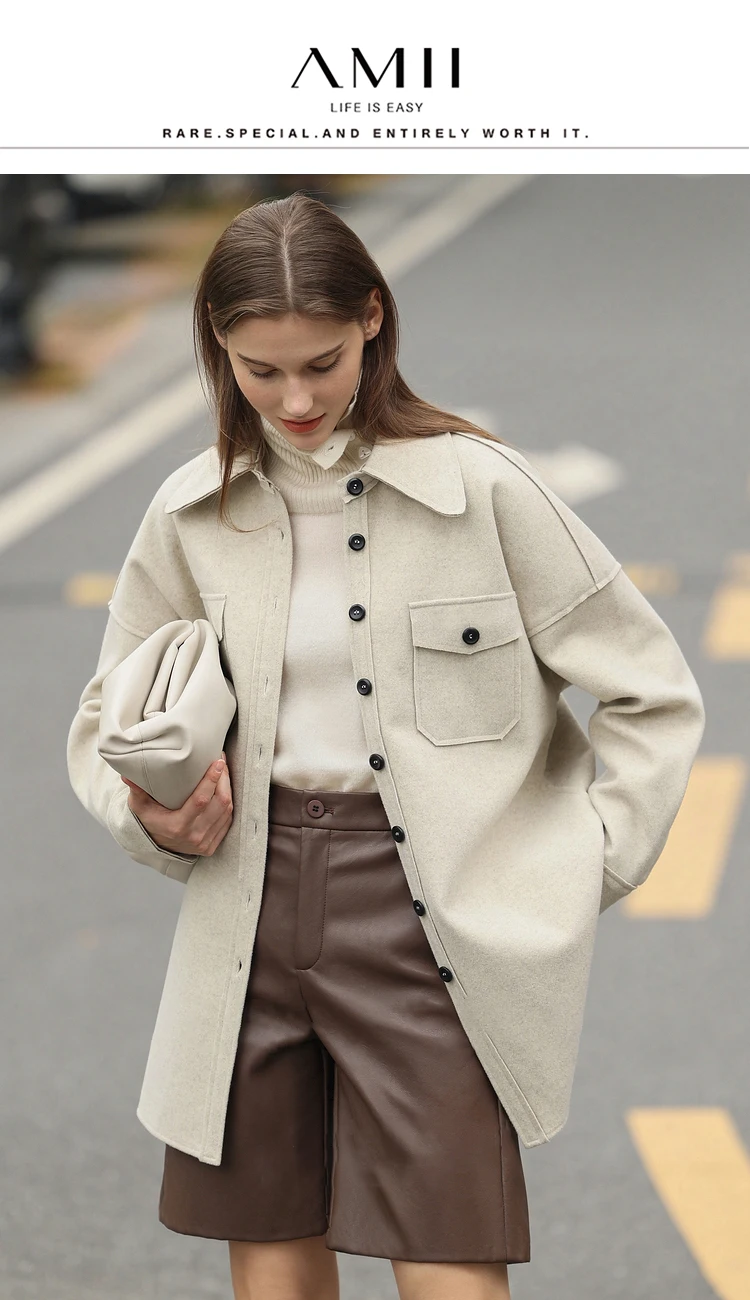 AMII Cappotti di lana per donna 2025 Inverno Nuovo stile BF Tasca allentata Manica lunga Top Caldo versatile Cappotto da donna 12424101