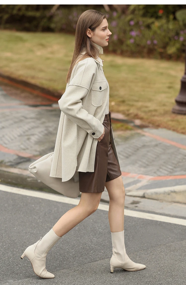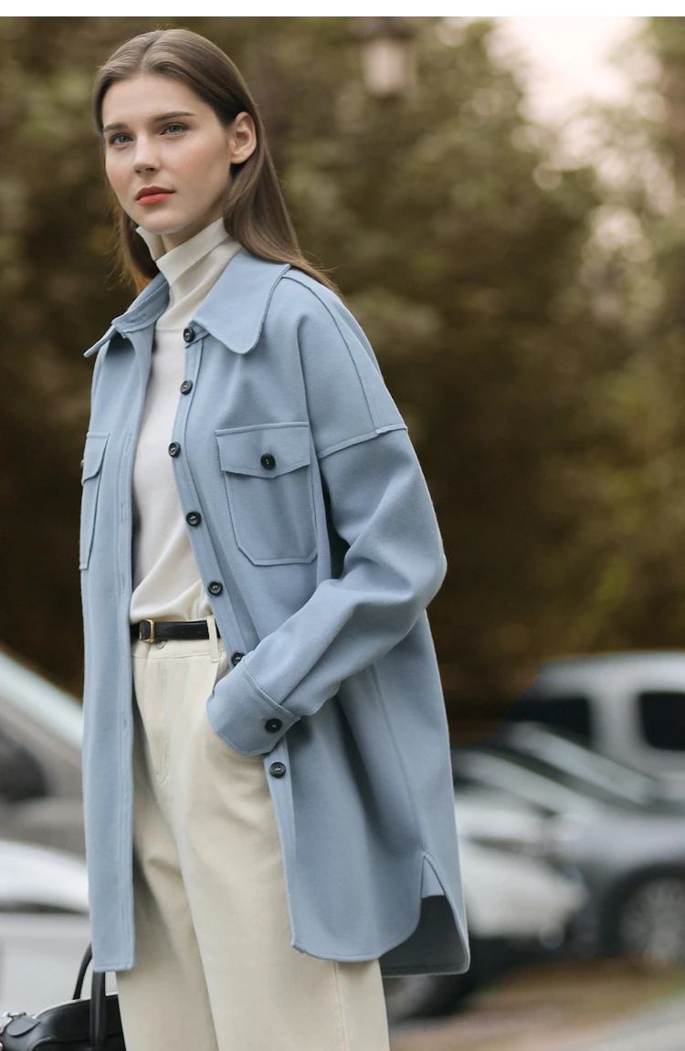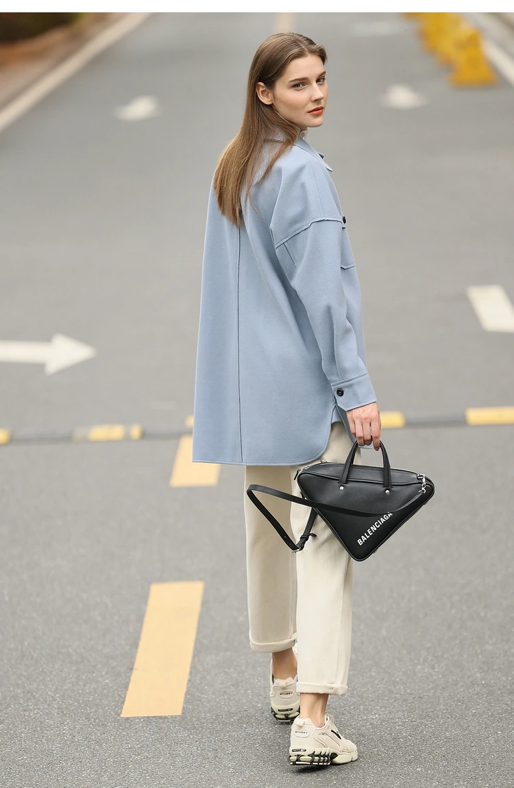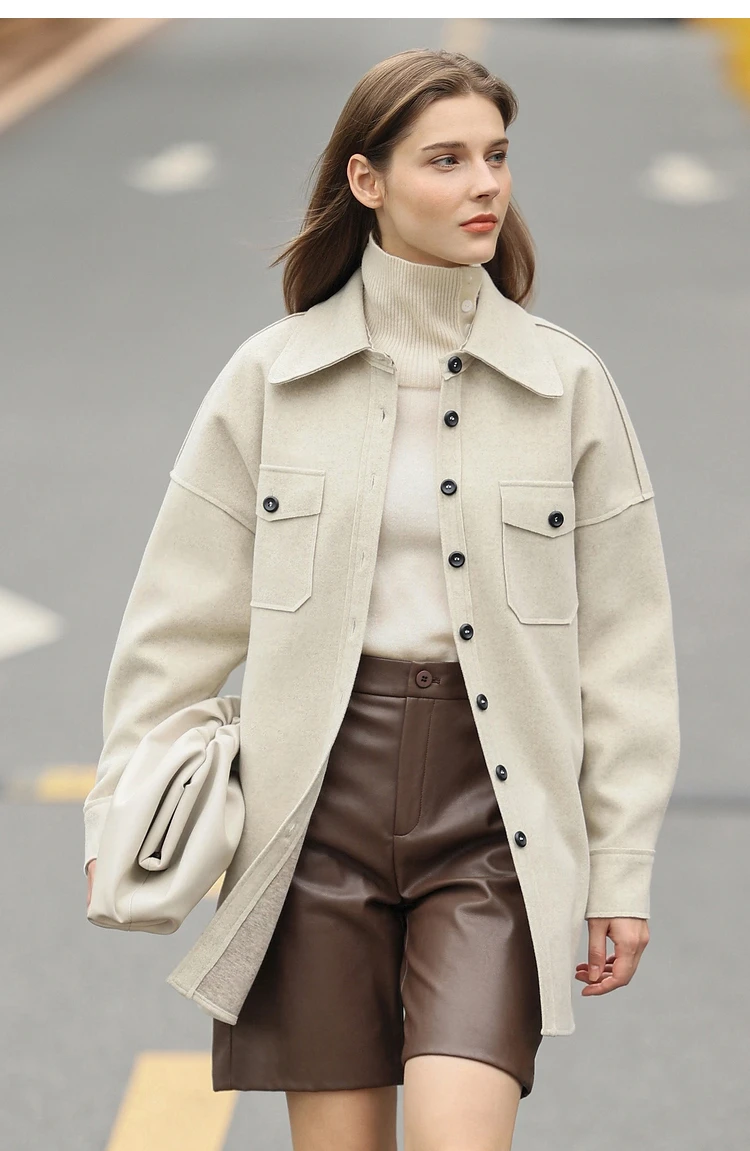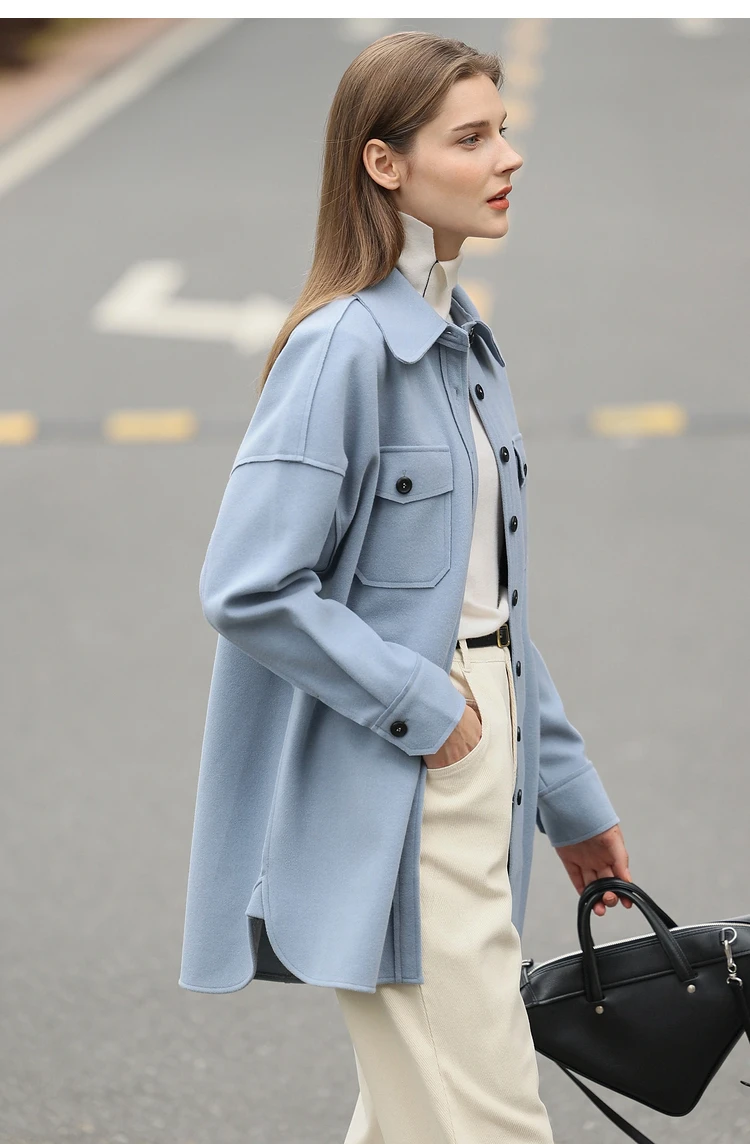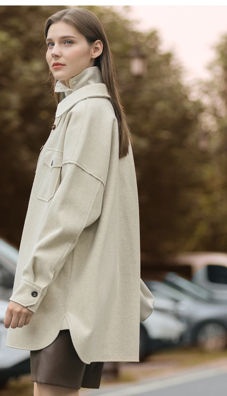 AMII Cappotti di lana per donna 2025 Inverno Nuovo stile BF Tasca allentata Manica lunga Top Caldo versatile Cappotto da donna 12424101