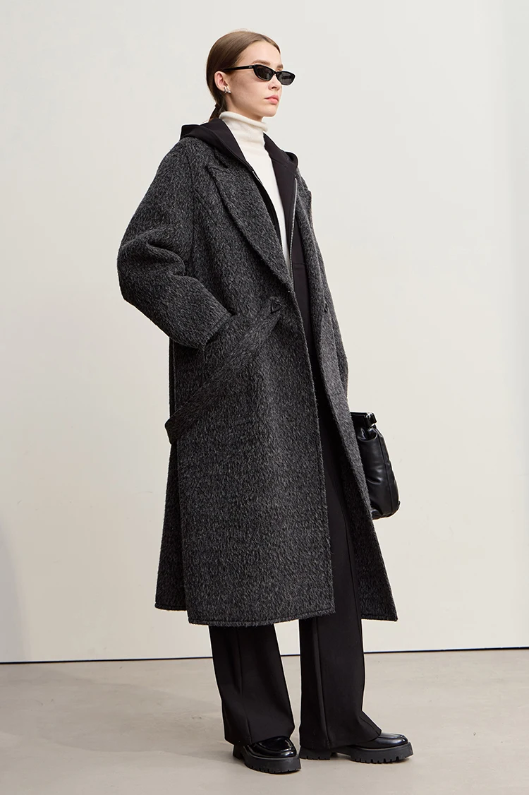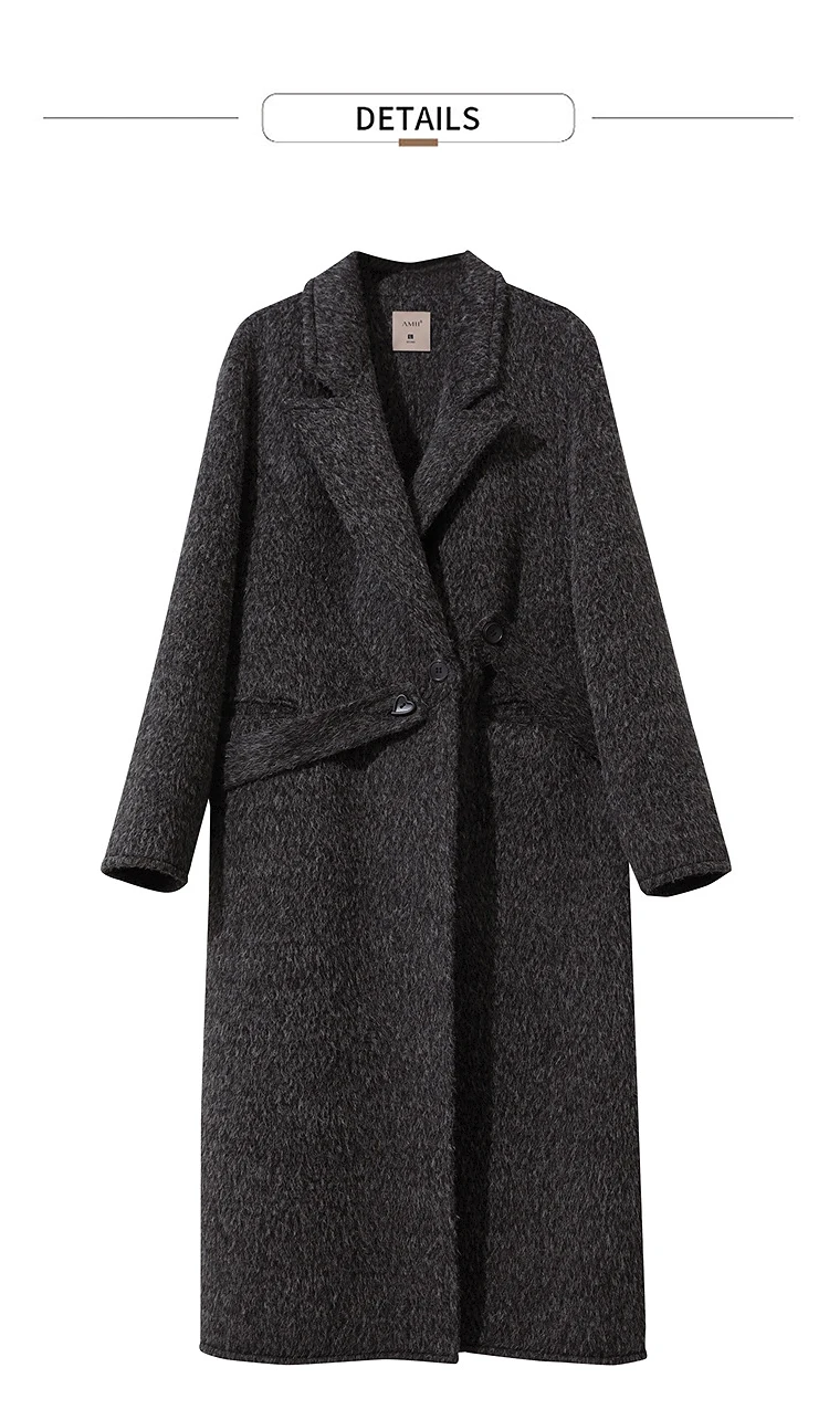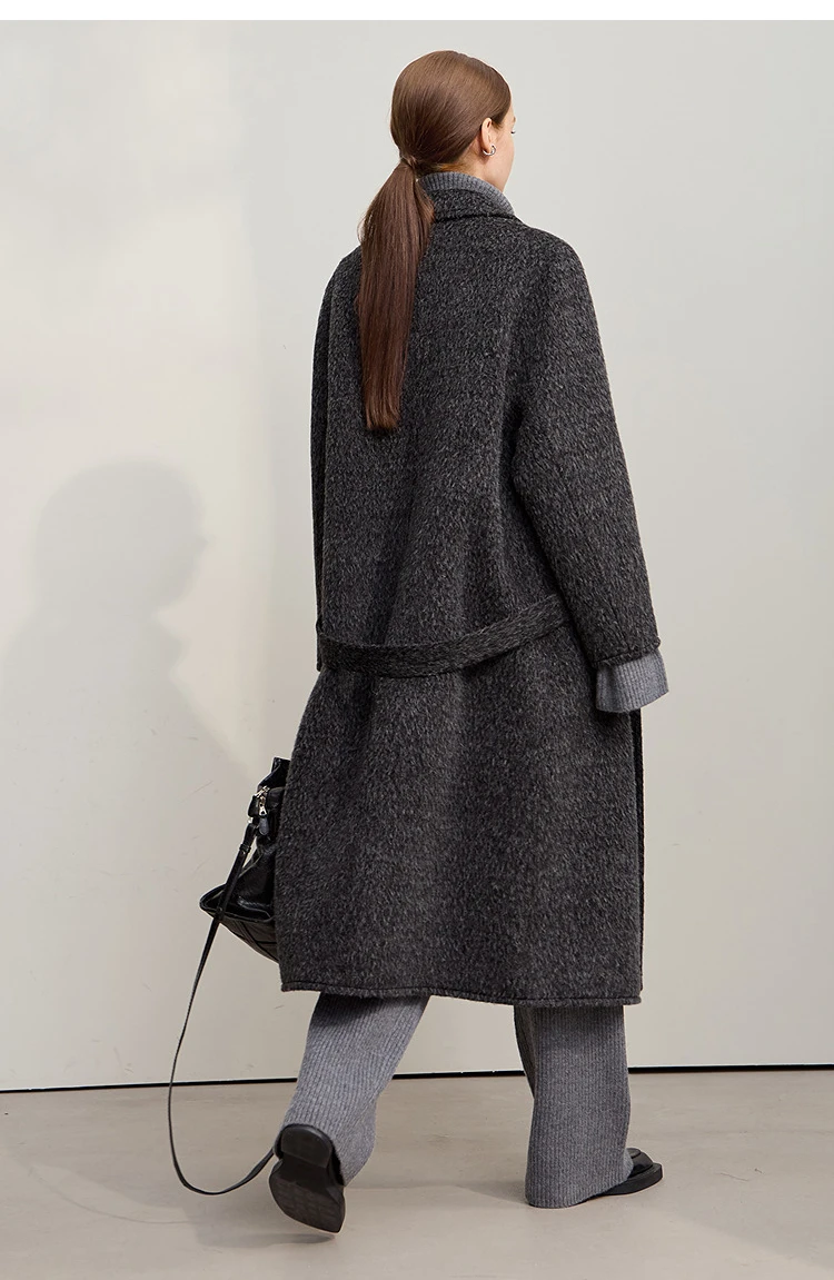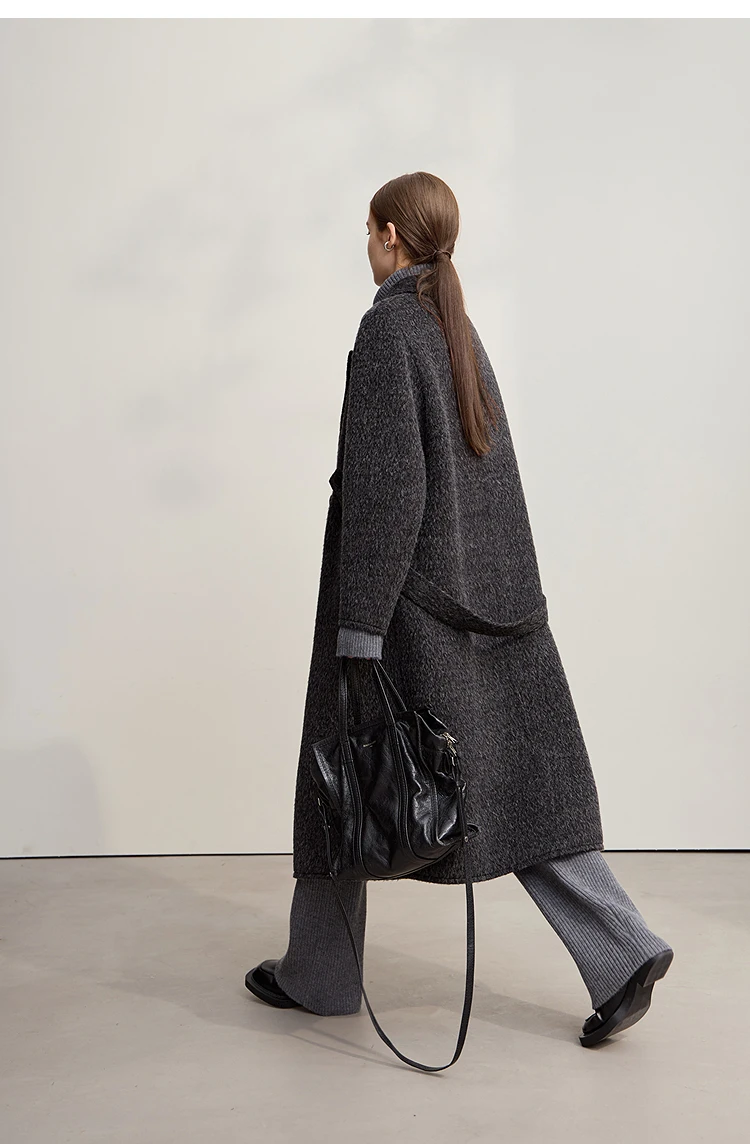 AMII Cappotto di lana da donna 2025 Inverno Nuovo colletto lungo allentato con risvolto con cintura Elegante cappotti di lana double face per donna 12554070