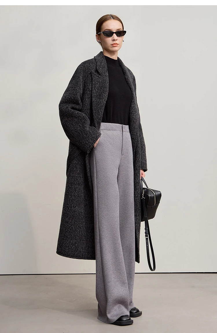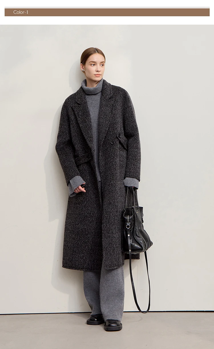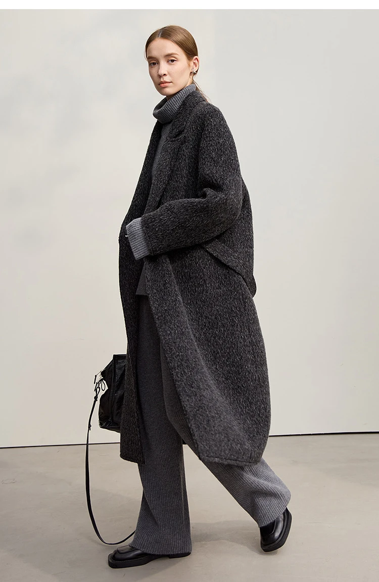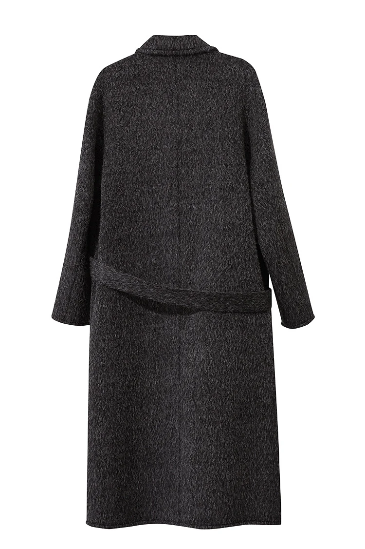 AMII Cappotto di lana da donna 2025 Inverno Nuovo colletto lungo allentato con risvolto con cintura Elegante cappotti di lana double face per donna 12554070